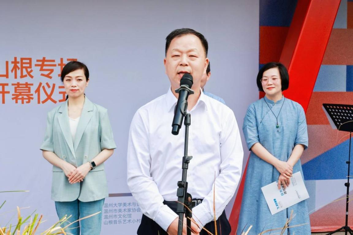 首先,市委宣传部副部长曾伟为本次活动致辞。他向本届毕业作品展的隆重举行表示祝贺,充分肯定了温大美院在专业建设、人才培养、艺术创作和文化繁荣方面取得的成绩,并对毕业生继续弘扬工匠精神、创造时尚之美、呈现文化之美、赞颂生活之美寄予厚望。他指出,温大美院本届毕业生作品展作为2022温州青年艺术周的首场活动,不仅丰富了市民的文化生活,也让青年学生作品得到更多关注,为城市营造了浓厚的艺术氛围。