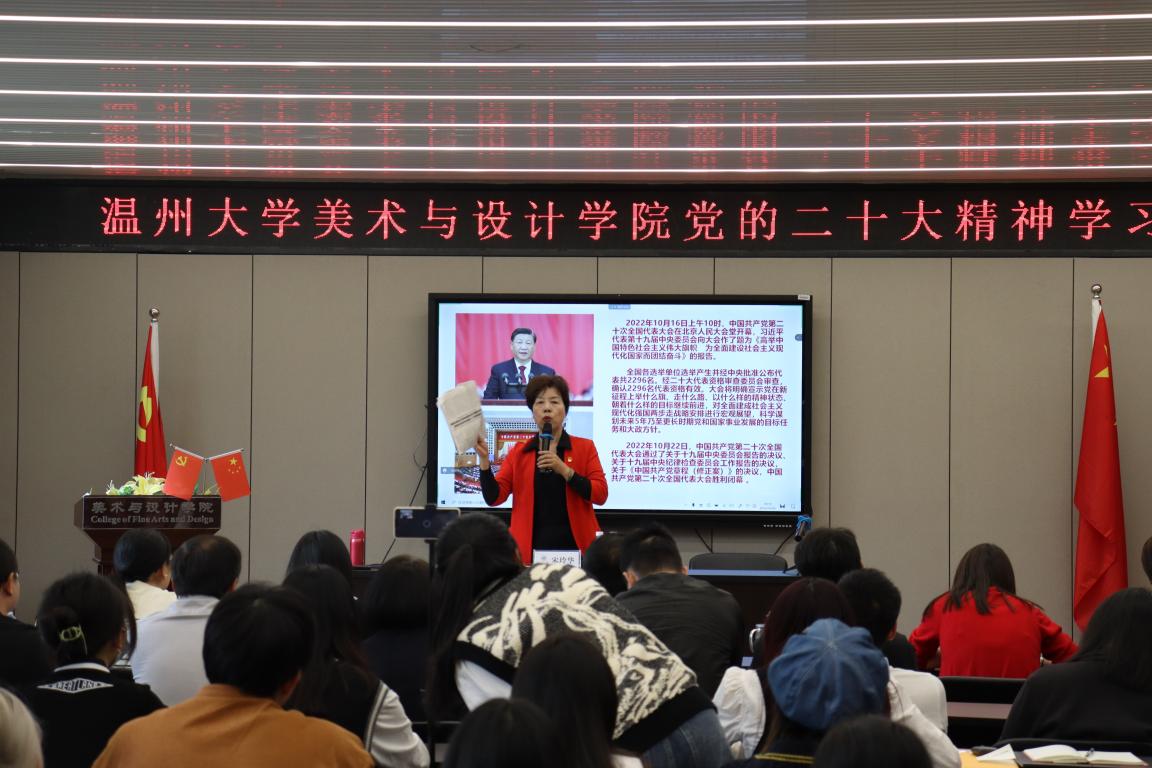 为深入学习宣传贯彻党的二十大精神,感悟思想伟力,汲取奋进力量,引导全院师生切实把思想和行动统一到党的二十大的精神上来,10月26日下午,ylzzcom永利总站线路检测组织开展党的二十大精神学习会,特邀党的十九大代表宋玲华同志为学院全体师生作“学习感悟党的二十大精神”专题宣讲报告。会议由学院党委书记叶正飞主持,近500名师生线上线下参加学习活动。 宋玲华老师是党的十九大代表,市妇联执委,瓯海区关工委主任,瓯海区慈善总会副会长,瓯海乡村艺术团联合会主席,宋玲华党代表工作室负责人,浙江省关心下一代报告团成员,温州银耀瓯越宣讲员,温州老干部大学流动红色能源站讲师,宋玲华宣讲工作室负责人。 学习会上,宋老师从一名党代表的视角、一名退休党员的视角、一名公益先锋的视角,全面分析讲解党的二十大报告内容,分享了二十大精神的内涵理解和学习体会。她指出党的二十大是在全党全国各族人民迈上全面建设社会主义现代化国家新征程、向第二个百年奋斗目标进军的关键时刻召开的一次十分重要的大会,是一次高举旗帜、凝聚力量、团结奋进的大会,在党和国家发展进程中具有极其重大的历史意义。党的二十大报告,为党和国家事业描绘了清晰的发展路线,擘画了宏伟的发展蓝图,充分彰显了我们党坚如磐石的历史自信、举旗定向的政治担当和高瞻远瞩的战略视野,是我们党团结带领全国各族人民在新时代新征程坚持和发展中国特色社会主义的政治宣言和行动纲领。 “我要把党的‘好声音’传递到基层群众,传递给青年学生,这是我的职责和使命。”宋玲华老师在宣讲过程中也分享了多年来践行一名共产党员初心使命的经历,从丰富地方群众的文化生活到宣讲低碳环保的生活方式,从省吃俭用捐助困难群众到关爱帮扶失足少年,从退休党员干部到十九大党代表……,希望通过自己的付出和行动,带动更多人做对社会有益的事。 学习会上,宋玲华老师用习总书记的话“青年强,则国家强!”来勉励师生党员,要坚定不移听党话、跟党走,怀抱梦想又脚踏实地,敢想敢为又善作善成,立志做有理想、敢担当、能吃苦、肯奋斗的新时代好青年,让青春在全面建设社会主义现代化国家的火热实践中绽放绚丽之花。 叶正飞书记总结指出,学习好宣传好贯彻好党的二十大精神是当前和今后一个时期学院的首要政治任务。新时代新征程,全院师生要深学细悟党的二十大精神,要把坚决拥护“两个确立”转化为坚决做到“两个维护”的实际行动,要聚焦“争当表率、争做示范、走在前列”光荣使命,奋力推动学院高质量内涵式发展,为全面建设社会主义现代化国家、全面推进中华民族伟大复兴作出更大贡献!