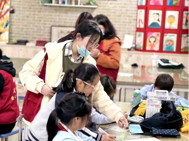 研究生党支部许瀚尹:作为一名志愿者,在这次学院组织的党日活动中,我受益良多。美术课堂上,孩子们欢声笑语,通过志愿者们的帮助创造出许多优秀且有创意的作品。同时也增强了我的组织能力,锻炼了自己的意志和耐心。我从中得到思想上的升华,学会与他人沟通,学会关爱他人,也更深刻地领会到生命的意义。并且也为我提供了一个锻炼自己的机会。作为大学生我们更要紧紧围绕构建和谐社会的主题,营造奉献、友爱、互助、进步的时代新风,全面提自身的综合素质。