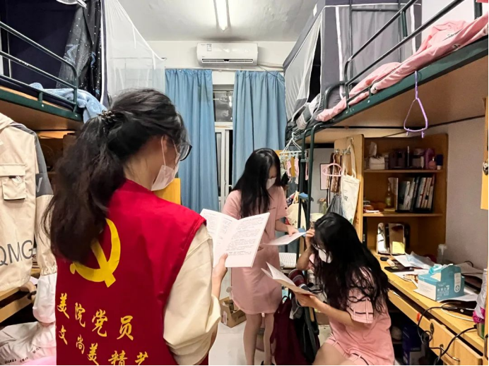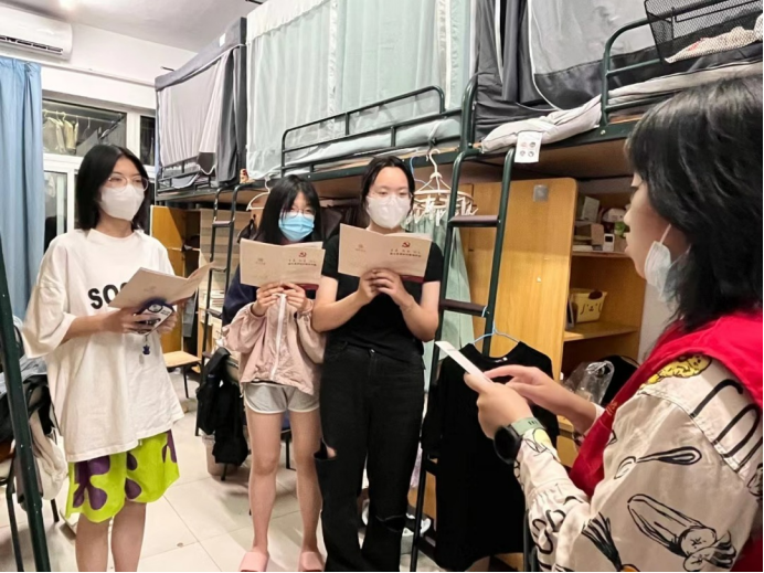 为关怀新生学习与生活,进一步增强学生党员联系群众的主动性,强化学生党员的服务意识,发挥学生党员的示范作用,宣传党建和党组织有关知识。近日,永利官网本研学生党支部组织开展了下寝宣传交流活动,积极地向22级的新生介绍关于学院支部的情况,并热心地为他们解决困惑。