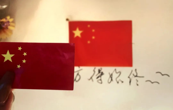 有一种感动叫做“中国红”有一种骄傲叫做“五星红旗”有一种表白叫做“我爱你中国”有一种画面叫做“我与国旗合个影”