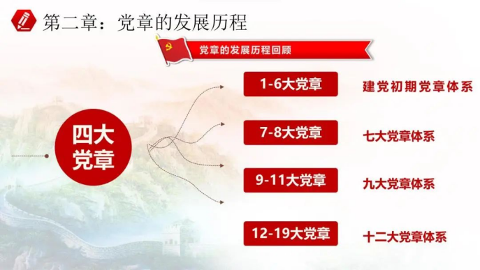 自中国共产党诞生以来一百多年间,共制定通过了一部党纲、八部党章、十部党章修正案,形成了“纲章合立”的文本结构和严密自洽的逻辑结构。从党章的修订和完善的过程来看,党章的丰富和完善,反映了我们党的指导思想的与时俱进,反映了我们党作为中国人民的领导核心不同时期是用什么样的路线方针政策引领国家发展、团结凝聚全国人民的,也反映出我们党的建设不断进步和加强。