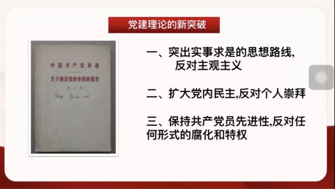 通过此次微讲堂,我们走进了中共七大、八大——“七大”是中国共产党在民主革命时期召开的最后的、也是最重要的一次代表大会。它以“团结的大会,胜利的大会”载入中国共产党的史册;八大是中共完全脱离苏联模式的影响,独立探索社会主义建设的开始,其中邓小平同志对八大的贡献是不可磨灭的。