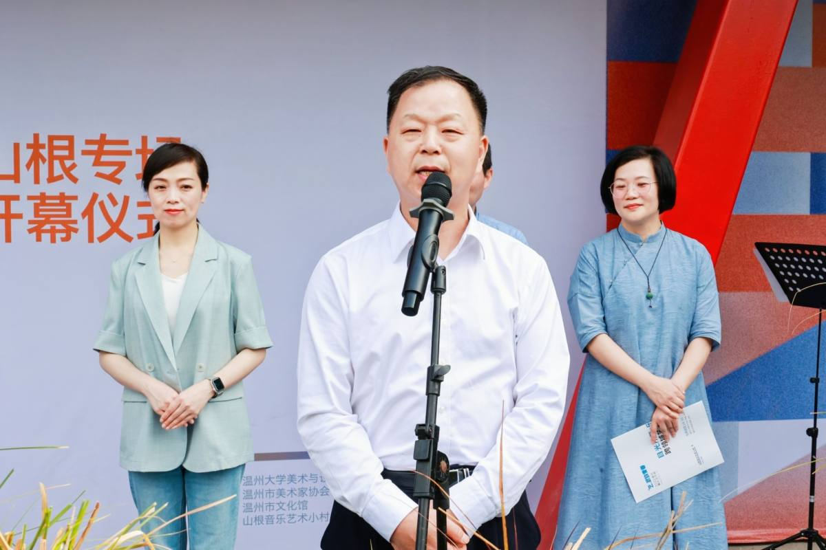 市委宣传部副部长曾伟,市文广旅局副局长李方喜,ylzzcom永利总站线路检测党委副书记吴金法,瓯海区委宣传部常务副部长王芬,市经信局生产服务业处副处长郑信义,浙江旅游民宿产业联合会会长金斌坚,ylzzcom永利总站线路检测院长谢子静、党委书记叶正飞、副院长顾任飞、副书记叶如芳,ylzzcom永利总站线路检测音乐学院副院长张逸,温州理工学院设计艺术学院院长助理叶洲荣,温州商学院传媒与设计艺术学院院长吴耀等领导与嘉宾亲临现场。参加开幕式的还有其他行业、企业、兄弟院校的代表、媒体记者以及师生代表。ylzzcom永利总站线路检测副院长胡文超主持开幕式。