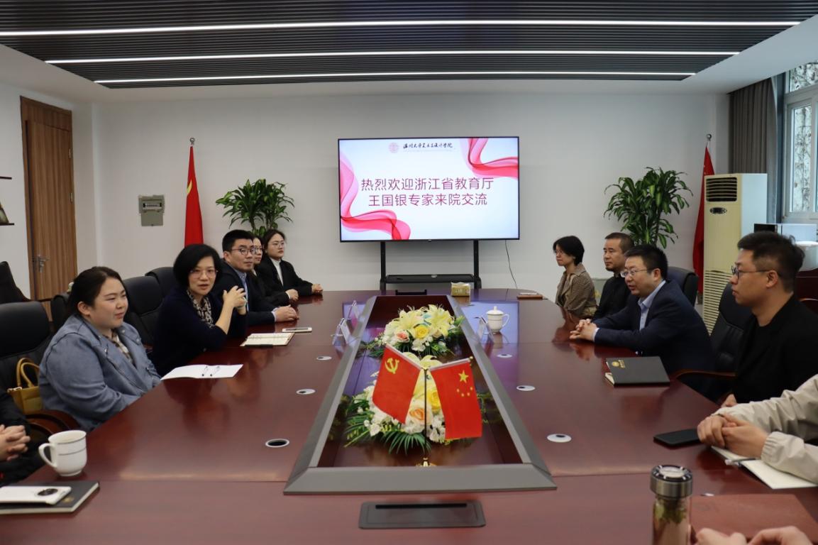 3月12日上午,浙江省教育厅二级调研员王国银教授一行来永利官网指导工作,学院院长谢子静,副院长胡文超及教师代表参加座谈会,讲座由谢子静院长主持。