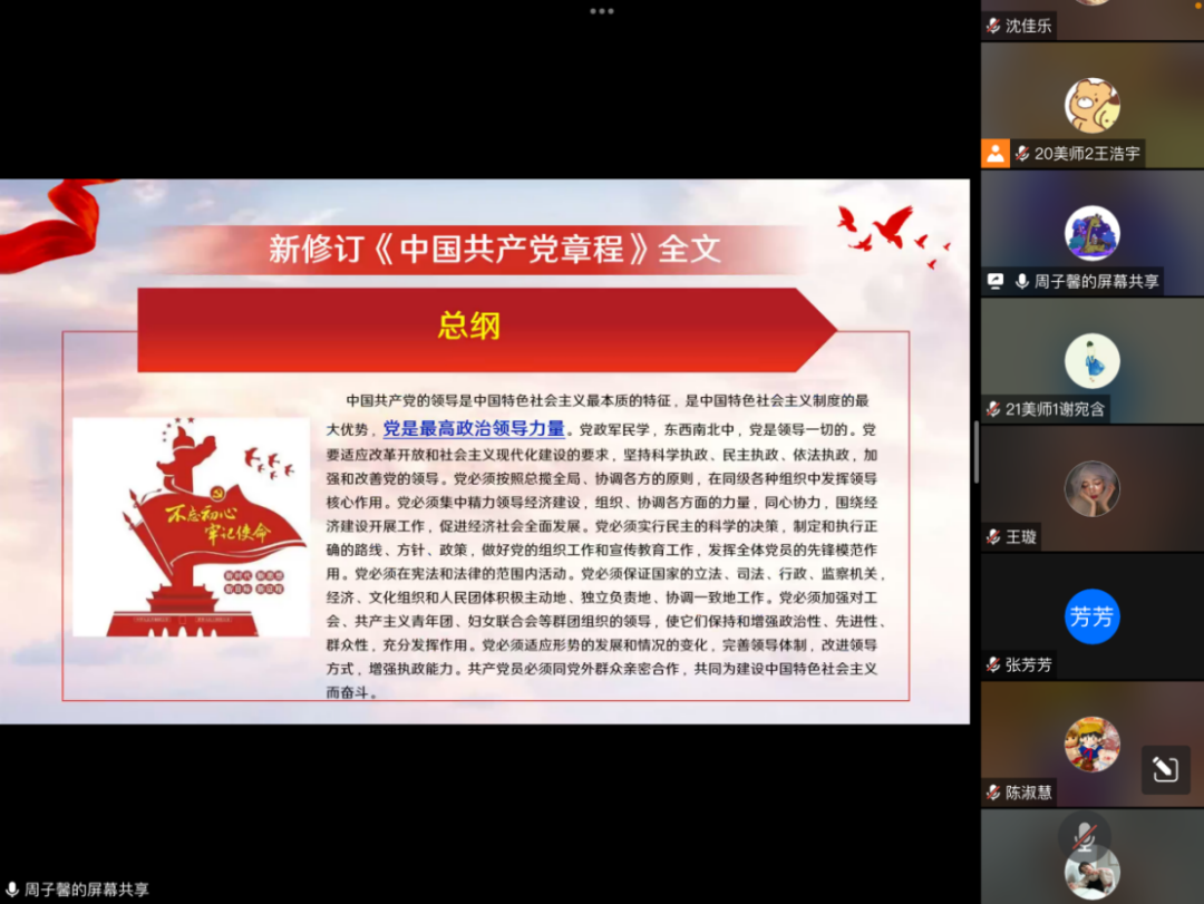 3月26日,ylzzcom永利总站线路检测学生第一党支部在线上通过学习《中国共产党章程(修正案)》,更加深入了解此次党章修改的工作过程、重大意义和主要内容。党章的一次次完善,体现了党的理论创新、实践创新和制度创新的时代特色;彰显了中国共产党人推陈出新、与时俱进的创造精神。