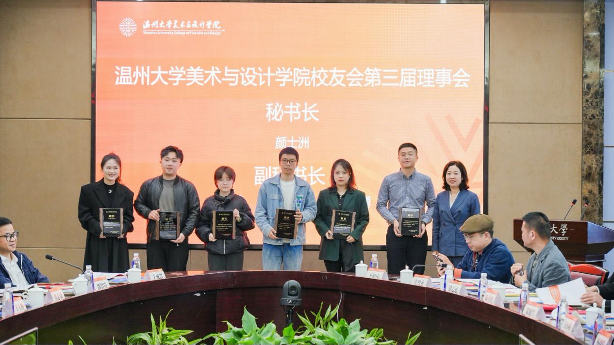 大会审议通过了《ylzzcom永利总站线路检测校友会章程(修订)》(草案)和《ylzzcom永利总站线路检测校友会第三届理事会建议名单》。会议选举产生了第三届理事会理事,91届校友金纬当选第三届理事会会长、14届颜士洲校友当选第三届理事会秘书长。本次换届为温大美院校友工作的长期可持续发展奠定了坚实基础。在聘任仪式上,学校、学院领导为新任会长、副会长、理事、秘书长、副秘书长颁发聘书。