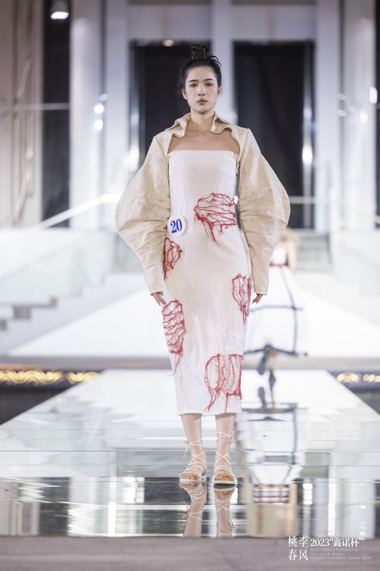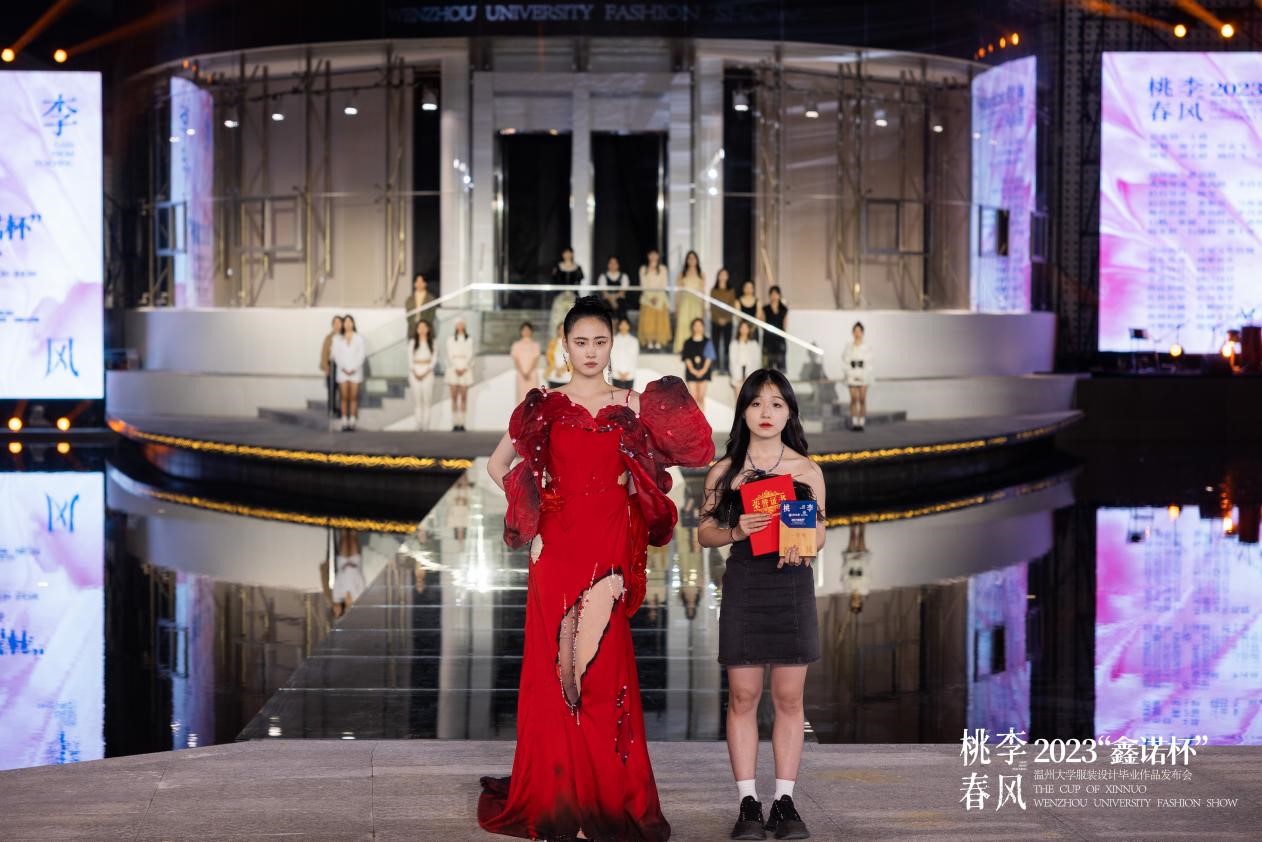 2023年4月20日晚,一场别开生面的时装秀在ylzzcom永利总站线路检测美术馆水上T台隆重举办。中共温州市委宣传部副部长曾伟、温州市文学艺术界联合会党组书记周新波、温州市文化广电旅游局副局长李方喜温州市经济和信息化局总工程师丁建忠等市有关领导作为嘉宾亲临现场,ylzzcom永利总站线路检测副校长蔡曙光、纪委书记杨林书、副校长王舜、副校长潘玉驹、ylzzcom永利总站线路检测院长谢子静等出席活动。此外,还有来自温州各企业家代表、艺术界的名家、设计师、时尚达人,媒体界的朋友们纷纷到场支持,现场近500人,座无虚席。 这场时装秀不同于往年的毕业秀,是首次在高校的美术馆水上T台举行服装设计专业的毕业大秀。本次发布会以桃李春风为主题,由30位ylzzcom永利总站线路检测服装与服饰设计即将毕业的学生主导,在创意和时尚的碰撞中,探寻未来的温州时尚发展之路。 立足当下 畅想未来 ylzzcom永利总站线路检测副校长王舜就本次毕业秀发表了致辞,王舜指出ylzzcom永利总站线路检测充分发挥在鞋革服装等方面优势特色,依托服装与服饰设计国家级一流专业等优势载体,探索重内涵、强实践的人才培养模式,在人才培养、艺术创作和服务地方文化繁荣等方面取得了丰硕成果,为助力温州争创“中国时尚服饰中心城市”、打造“国际化的时尚产业创新先行区”作出了积极贡献,在未来温大服装设计专业的学子也一定能为社会做出更多的贡献。 波光鳞动 艺术定格 在清澈的水面上,模特们身着设计师们的时尚作品,婀娜多姿的走过,展示出了独特的视觉效果。一年一度的服装毕业作品发布会具有重要的意义和作用,是学院人才培养质量的一次重要展示,也是温州服装设计师们交流思想“时尚盛宴”。今年的赛事由海宁鑫诺服饰有限公司支持,为本届30位ylzzcom永利总站线路检测服装设计专业的毕业生提供了一次展示自我和超越自我的机会。本次发布会共有90套作品展出,是学子们对时装设计和艺术观念的一次创新尝试,希望为大众带来更多不同寻常的时尚和艺术体验。 新潮活力 激情澎湃 本次发布会共分四大篇章发布会共分四大篇章,是《种子——厚爱加身,身披铠甲》、《水——澄澈轻快,渗透浸养》、《阳光——欢歌跳跃,花蝶蹁跹》、《参天大树——天地承托,群山巍峨》,作品风格各异,囊括希望与克制、未来和复古、浪漫而先锋、 都市及民俗、前卫融嬉皮、深邃携空灵、觉醒搭混沌等各类元素,展示了新锐设计师对服装艺术的理解和追求,用青春浪漫的遐想,用布帛为载体以创新的剪裁构塑出服装艺术新形象,颠覆人们对服饰的认知,拓展了服装文化的内涵。 大咖云集 异彩纷呈 本次发布会邀请了四位重量级评委,他们是海宁鑫诺服饰的董事长刘军先生和浙江中胤时尚股份有限公司的董事长倪秀华女士,意大利欧洲设计学院的教授兼时尚设计师的菲利波·斯特拉达先生,还有温州服装商会的秘书长陈琦翔先生。 经专家评委评审,欧帅英的作品《破晓》最终摘得一等奖;赵子晴的作品《遇见神都》,林雨欣的作品《溯流光》系列作品获得二等奖;叶庆敏的作品《共生》,曾晨的作品《异世双生》,唐紫怡的作品《傀儡戏法》3套系列作品获得三等奖。每个获奖作品都凝聚着毕业生的灵感和心血,也代表着当代学生的朝气蓬勃。 获得一等奖的设计师欧帅英介绍,作品《破晓》灵感来源于《黑白魔女库伊拉》中火烧白袍这一经典片段,将华丽中带有破坏的艺术风格及夸张的礼服造型运用在本次设计当中,以浓郁的红色为色彩基调,在造型夸张的红色礼服上通过泼墨、灼烧等破坏面料的方式对礼服进行二次创作,来表达“破晓”这一主题,打破传统高级时装设计思维,使礼服有更多可能性,打造强烈的视觉冲击。 桃李不言 春风不语 桃李不言,下自成蹊。本次毕业展离不开服装设计学院的各位老师在背后的辛勤付出,他们带领着学子们克服重重困难,由懵懂慢慢走向成熟,直至他们能够走上社会,独当一面。 春风不语,即随本心。学子们从面对毕设的迷茫到一件件成品的产出,为梦想的奋斗只有开始,没有结束。这些作品是他们结束本阶段学习的最优秀的成果,也是进入下一阶段学习最好的敲门砖。