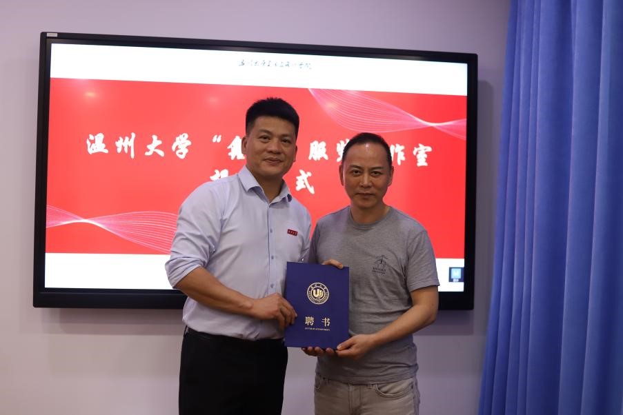 刘军董事长和叶正飞书记共同为ylzzcom永利总站线路检测“鑫诺”服装工作室揭牌,叶正飞书记为刘军颁发创新创业导师聘书。