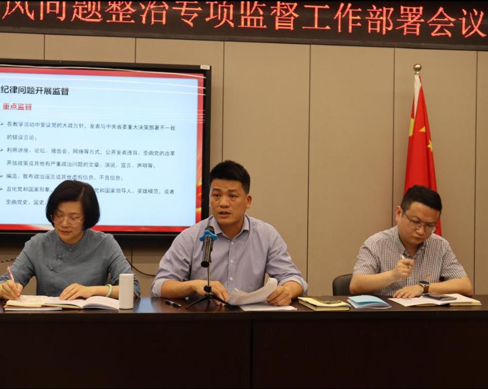 会上,叶正飞书记从目标任务、监督重点、进度安排等方面传达了《关于开展师德师风问题整治专项监督的工作方案》文件精神,并就违反政治纪律、违反廉洁从教、违反生活纪律、侵害学生权益、违反法律法规、违反学术诚信以及教育行政部门及学校失管失责问题等七个方面监督内容作重点解读说明。