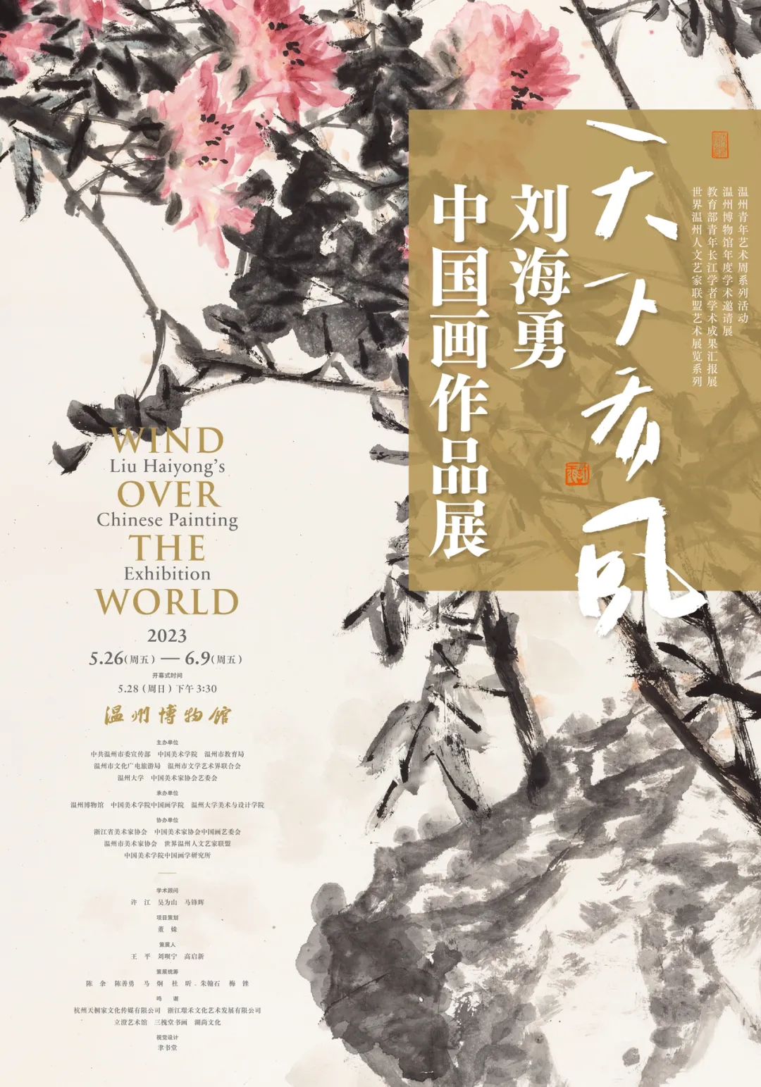 温州青年艺术周系列活动 温州博物馆年度学术邀请展 教育部青年长江学者学术成果汇报展 世界温州人文艺家联盟艺术展览 开幕式时间 2023.5.28(周日)下午3:30 展览时间 2023.5.26(周五)—2023.6.9(周五) 展览地点 温州博物馆 主办单位 中共温州市委宣传部 中国美术学院 ylzzcom永利总站线路检测 温州市教育局 温州市文化广电旅游局 温州市文学艺术界联合会 中国美术家协会艺委会 承办单位 温州博物馆 中国美术学院中国画学院 ylzzcom永利总站线路检测(股份)有限公司-BinG百科 协办单位 浙江省美术家协会 中国美术家协会中国画艺委会 温州市美术家协会 世界温州人文艺家联盟 中国美术学院中国画学研究所 学术顾问 许江 吴为山 马锋辉 项目策划 董姝 策展人 王平 刘呗宁 高启新 策展统筹 陈余 陈善勇 马炯 杜昕 朱翰石 梅锉 鸣谢 杭州天桐家文化传媒有限公司 浙江璟禾文化艺术发展有限公司 立澄艺术馆 三槐堂书画 湖尚文化 视觉设计 聿书堂