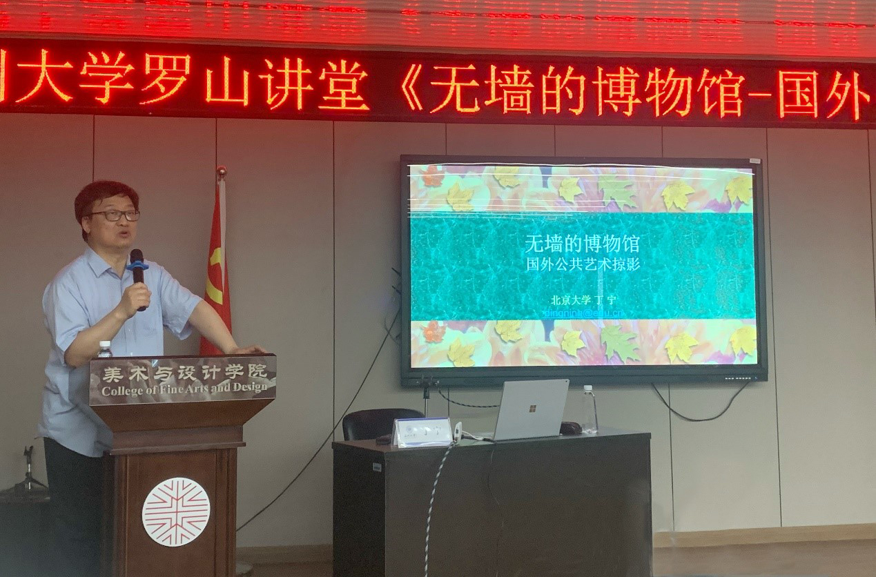 5月28日下午,北京大学艺术学院教授、博士生导师、教育部美术类专业教学指导委员会副主任委员丁宁教授莅临我校“罗山讲堂”,为广大师生带来“无墙的博物馆——国外公共艺术掠影”学术讲座。本场讲座系ylzzcom永利总站线路检测90周年校庆系列学术活动之一,由副院长顾任飞教授主持,学院教师、硕士生、本科生80多人参加。