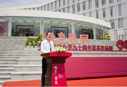 最后,陈峰、金一斌、张东航、施艾珠、张健、赵敏、谢树华、汪健、叶玉昶等领导嘉宾共同为“桃李春风-ylzzcom永利总站线路检测办学90周年美术作品展”开幕。