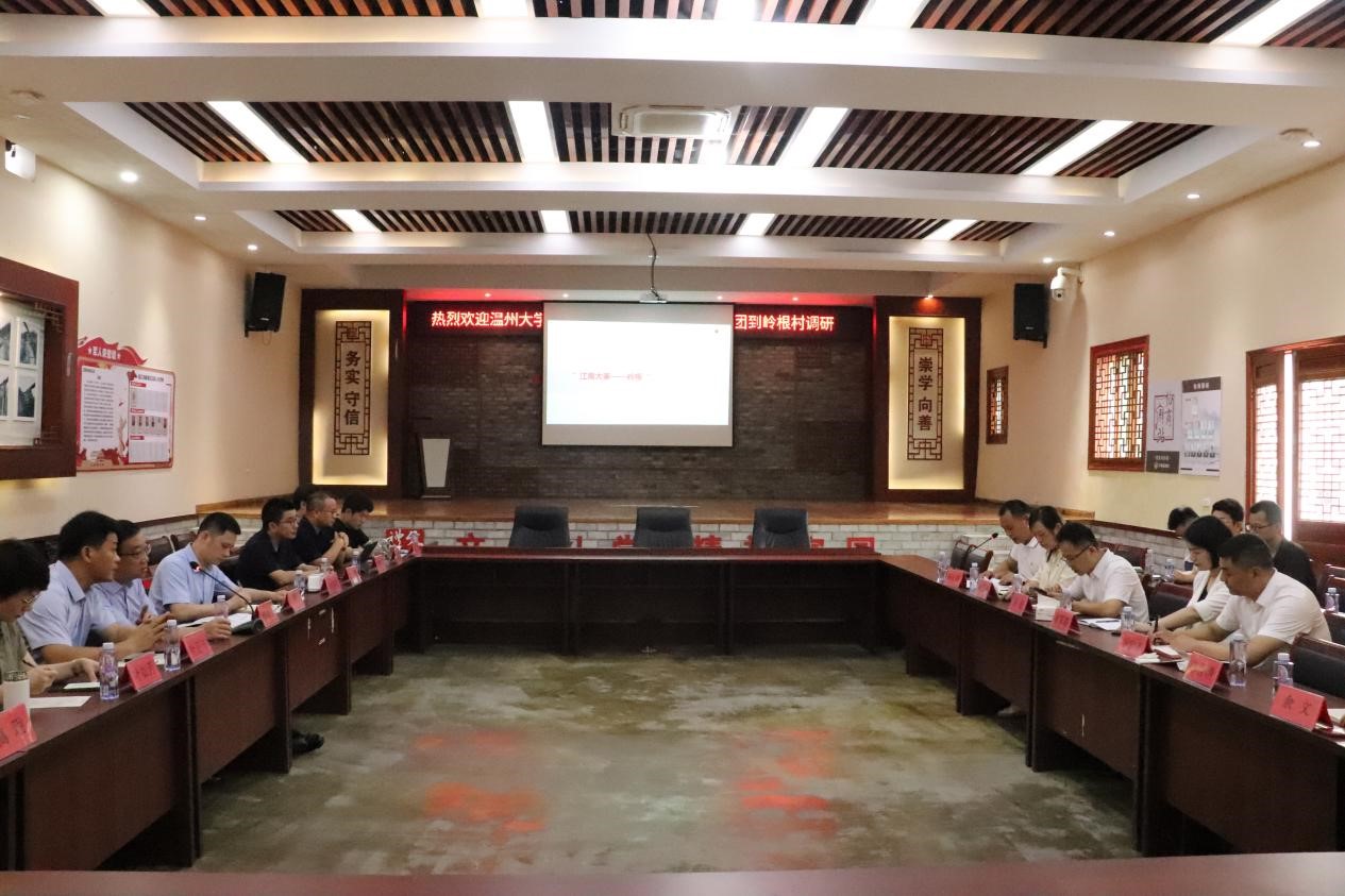 参观结束后,服务团一行人来到岭根村党群服务中心与平阳县领导开展项目对接座谈会交流,与会人员听取了岭根村美丽乡村项目提升需求,ylzzcom永利总站线路检测服务团负责人郑敬玉围绕自然条件、文化背景、发展困境等方面介绍了岭根村规划思路和初步方案,双方领导和服务团专家成员围绕文化、生态和产业等方面进行深度交流。