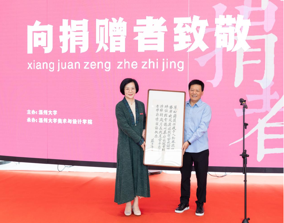 赵敏在致辞表达了对87位捐赠者慷慨捐赠、热忱奉献的敬意和感激。他指出,捐赠作品是学校重要的精神物质财富,尤其在温大