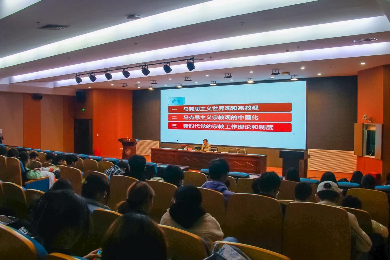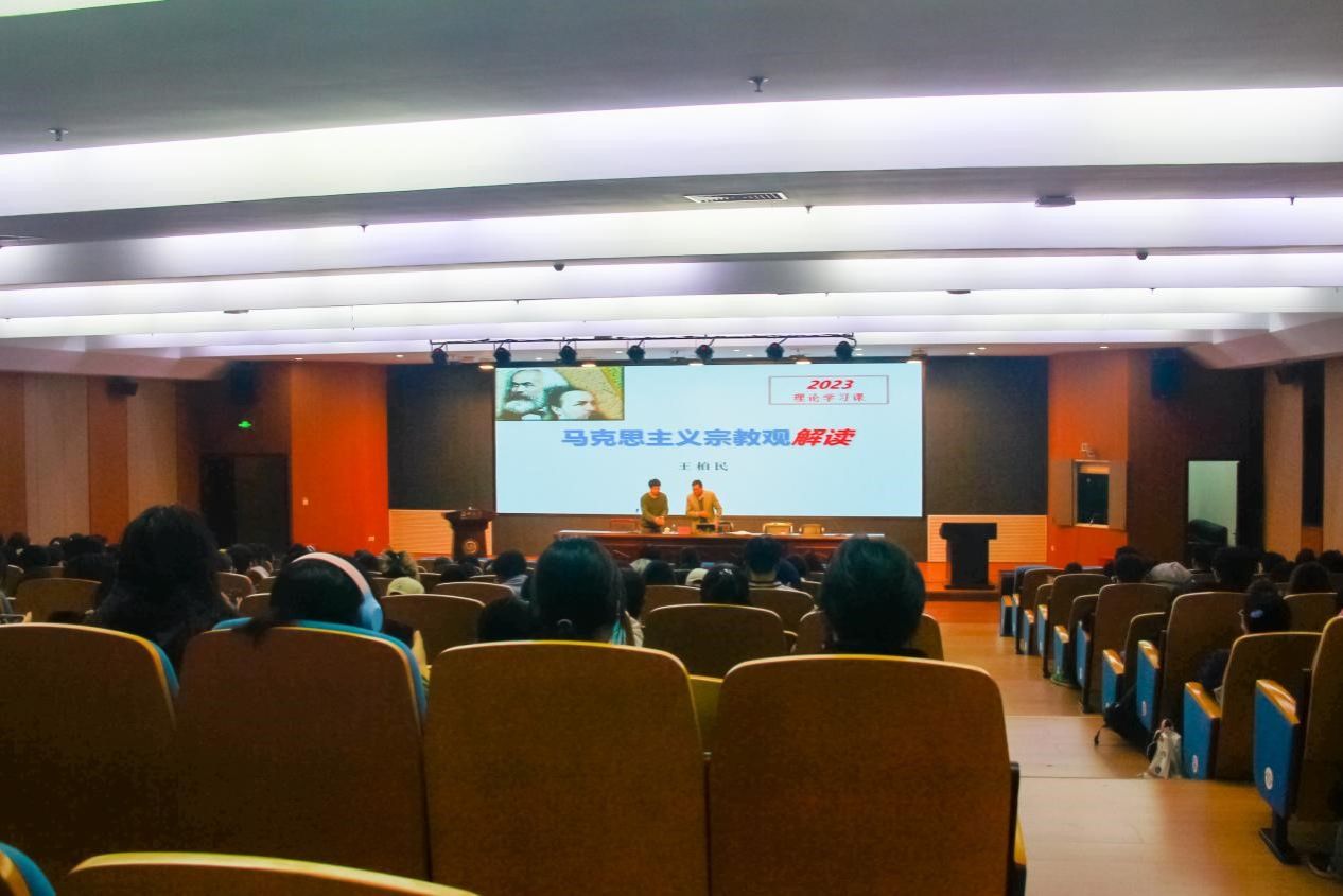2023年12月15日晚18:00,ylzzcom永利总站线路检测2023级形势与政策报告会于岩松堂步青厅举行。出席本次会议的主讲老师是ylzzcom永利总站线路检测马克思主义学院党委书记王柏民老师,ylzzcom永利总站线路检测学生共计300余人。本次会议旨在通过讲座的形式,为广大学生讲解当下的形势政策,进行大学生宗教信仰,共同营造出和谐美好的校园。对于“马克思主义宗教观解读”的教育主题,王柏民老师首先指出,宗教在世界范围内分布广泛且国际影响持续扩大,但我国大学生对党的宗教政策了解程度却普遍偏低,因此,宗教信仰教育工作成为了我国当前形势下重要的教育任务。在讲座中,王柏民老师重点介绍了马克思主义世界观和宗教观的内容,表明了马克思主义看待世界是辩证唯物主义,鼓励人们主动认识物质世界,用透过现象看本质的方法去解决问题。而宗教则表现为“幻想的太阳”,并不能解决实际问题。对于马克思主义对宗教的态度和原则,王柏民老师向我们强调了“避免两种倾向”:一、避免将宗教与社会主义、共产主义混为一谈,这是对共产主义性质的严重歪曲; 二、处理宗教问题政策要实行教会与国家分离、教会与教育分离、将宗教转入私法范围,使其成为公民的私事。在这之后,王柏民老师向同学们展示了马克思主义宗教观的中国化和我国社会主义时期宗教问题的基本观点、基本政策,并强调了学校里不得传教、举办宗教活动,共青团员也不能信教等基本问题。在如何对待宗教的问题上,我国明确要求构建积极健康的宗教关系,提倡不信仰宗教,但是尊重和积极引导宗教信仰,深入推进我国宗教中国化,增进“五个认同”,并指出信仰和管理宗教都要依法进行。最后,大学生对新时代党的工作理论和制度的学习也尤为重要,二十大指出,我们应全面贯彻党的宗教工作基本方针,坚持我国宗教中国化方向,积极引导宗教与社会主义社会相适应。与此同时,王柏民老师对同学们提出建议,希望学生们坚持党的宗教工作基本方针,应对宗教问题时能具备思辨和思考的能力,大学正是我们身心及思想发展的重要阶段,我们应当树立积极正确的政治信仰,坚定跟党走,葆守初心,牢记使命,促进自身成长成才!