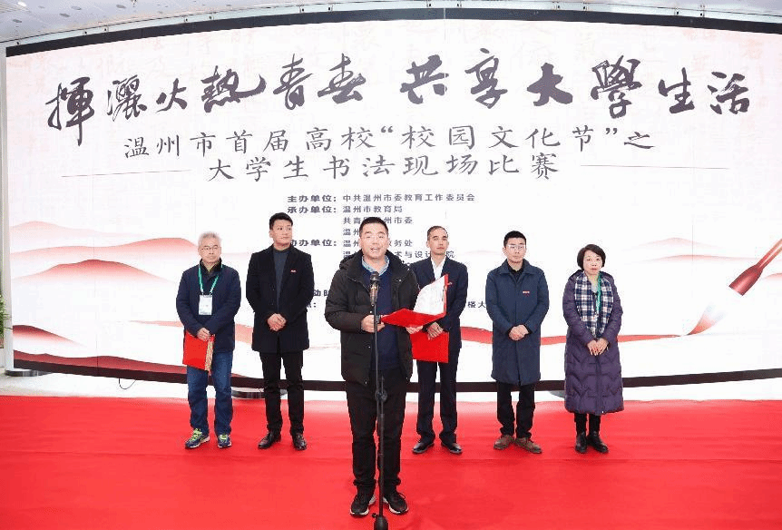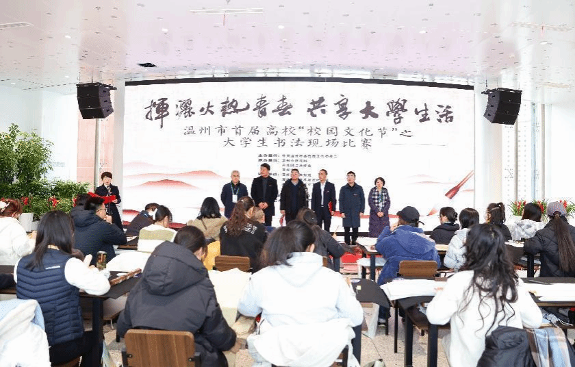 12月20日,温州市首届高校“校园文化节”之大学生书法现场比赛在ylzzcom永利总站线路检测美术馆举行。本次大赛由中共温州市委教育工作委员会主办,温州市教育局、共青团温州市委、ylzzcom永利总站线路检测承办。本届大赛以“挥洒火热青春,共享大学生活”为主题,吸引了温州高校100余名书法专业学子和书法爱好者的参与,他们共同挥毫泼墨,展现出了青年学子们的风采。大赛现场,温州市教育局高等教育处处长吕信恩、ylzzcom永利总站线路检测教务处处长罗建利、ylzzcom永利总站线路检测党委书记叶正飞、ylzzcom永利总站线路检测副院长胡文超等出席,ylzzcom永利总站线路检测党委副书记叶如芳主持。