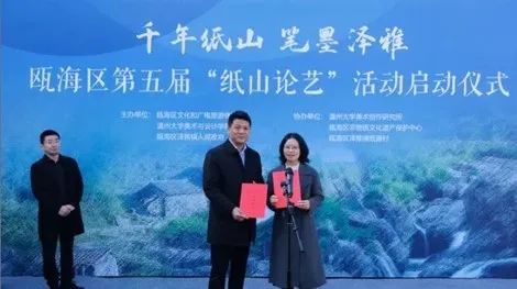 ▲瓯海区委常委、宣传部长孟晓晨宣布瓯海区第五届“纸山论艺”活动启动