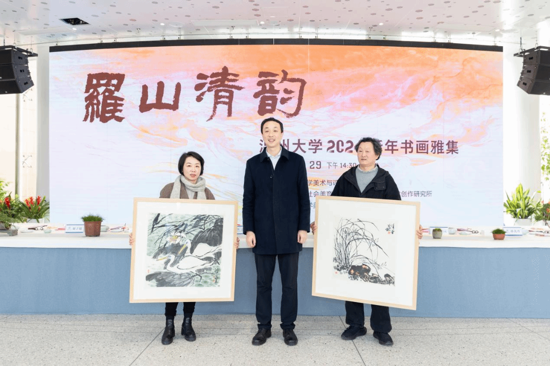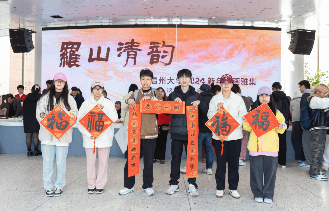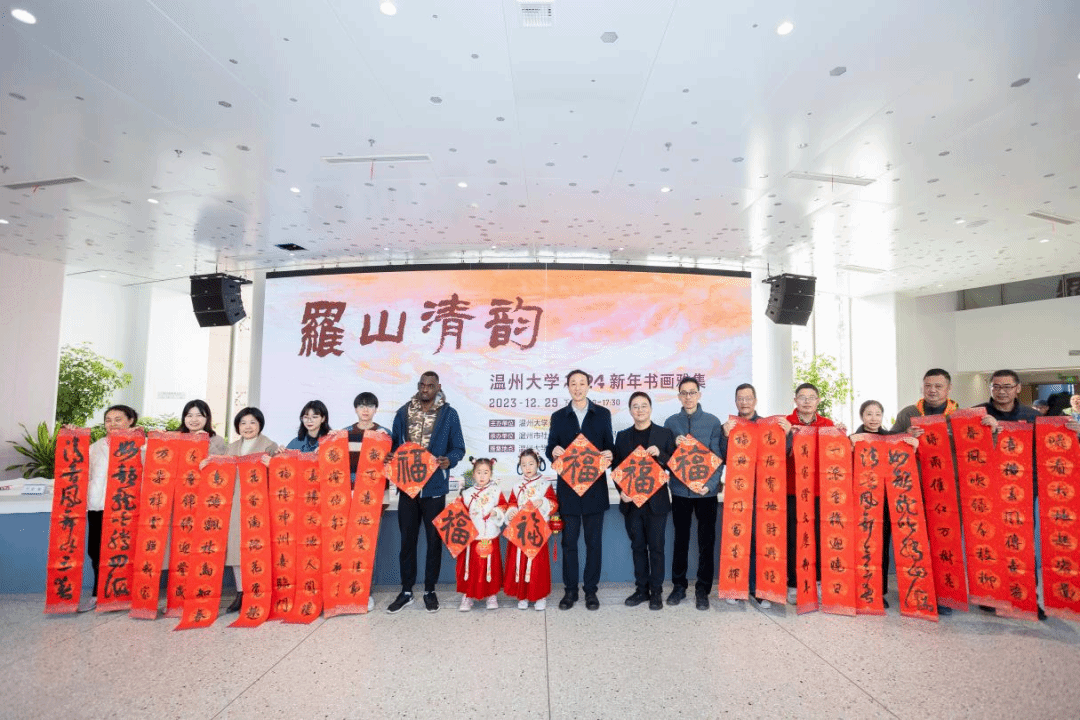 挥毫泼墨添锦绣,翰墨丹青绘新年。2023年12月29日下午,“罗山清韵——ylzzcom永利总站线路检测2024新年书画雅集”活动在ylzzcom永利总站线路检测美术馆隆重举办。本次活动由永利官网主办,温州市社会美育研究中心和ylzzcom永利总站线路检测美术创作研究所共同承办,24 位温州书画名家和永利官网美术、书法专业教师挥毫泼墨,现场创作书法、绘画作品,美术馆外张灯结彩,现场一片喜气祥和。 ylzzcom永利总站线路检测党委书记张健、温州市文联副主席谢子康、温州美术馆副馆长张真恺、人民美术出版社原副主编孟庆江、原温州师范学院美术系主任张如元、温州市美术家协会顾问孙光奇、温州市书法家协会顾问汪廷汉、温州书法家协会顾问陈出新、温州书法家协会顾问陈树冈、政协雁荡诗书画院顾问尚文光、ylzzcom永利总站线路检测特聘教授金松、温州市鹿城区美术家协会副主席阿岛、温州市书法家协会主席团委员王天津、学院班子全体成员和学院书法、绘画专业教师出席了雅集,各部门、学院师生代表、温大附幼小朋友以及留学生代表共100多人参加了活动。雅集开幕式由永利官网院长谢子静主持。 活动正式开始前由温州音乐家协会古琴协会副会长谷雪艳女士为现场嘉宾和师生弹奏了古琴《流水》片段,在悠悠琴音中雅集活动拉开序幕。 首先举行了作品捐赠仪式。孟庆江先生将其创作的《徐定超肖像画》捐赠给ylzzcom永利总站线路检测美术馆。学校党委书记张健为孟庆江先生颁发客座教授聘书。原温州师范学院美术系首届系主任叶玉昶先生将其创作的2幅花鸟画精品捐赠美术馆。 随后,在现场师生和嘉宾的共同见证下,张健书记、张如元先生、孟庆江先生和谢子静院长共同为新年雅集启幕。 “学者必以规矩,焕乎其有文章”,美术馆门厅悬挂的此幅对联是张如元先生为本次雅集活动专门创作。启幕仪式后,张健书记为师生赠送了福字和春联,以表达对师生们的新年美好祝愿。 书画嘉宾挥毫泼墨,现场创作了120多幅春联和福字送给前来参加活动的师生,为他们送上浓浓的新春祝福。前来领取福字和春联的师生络绎不绝,现场气氛格外热烈,为冬日校园增添了浓浓的年味。 新春送福环节结束后进行了迎新雅集,参加雅集的书画嘉宾以书画会友,提笔落墨,创作热情不减,并将现场创作的作品赠与温州大学美术馆收藏。 本次新春书画雅集是永利官网获批温州市社会美育研究中心后开展的首场活动,得到全校各部门及社会广泛关注,使全校师生更深切的感受到传统文化的魅力,为师生们传递了美的力量,同时也增强了高校与地方在美育工作建设中的互动,发挥高校在美育工作中的作用。