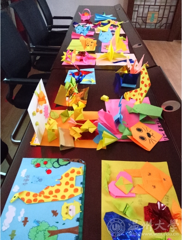 本次开展的活动主题为“手工折纸”活动。首先,小组代表王金香同学上台讲述本次的主题,并以提问问题的方式勾起小朋友的兴趣。随后,在志愿者们的带领下,每位小朋友都挑选了自己喜欢的各种颜色的折纸,将普通的一张纸折成了爱心的形状,传递着彼此间相互关怀的真情。小朋友们一会儿精心专注于自己制作的折纸作品,一会儿向身旁的志愿者讨教制作方法,尽情的沉醉在手工折纸的世界中。期间还有些同学还兴致勃勃地用纸张折出了花朵、跳跳蛙、千纸鹤等多姿多彩的造型,深受大家的好评。