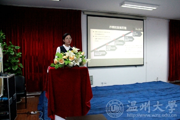 宣讲会上乔顿企业人事部负责人杨伟伟通过PPT、视频等方式从乔顿人才培养体系、乔顿企业文化、乔顿岗位薪资待遇等三方面向在座同学们做了详细介绍,从中体现了乔顿公司不仅是一家集科工贸于一体的大型服装生产企业,而且公司致力于营造家的氛围,打造良好的工作环境。