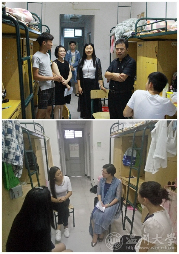 下午四点,新生家长见面会刚刚结束,李运河院长、谢子静院长便分成两组,前往超豪学区带领教师和学生干部下寝室慰问新同学。新生们刚入住寝室,学院领导和老师的关心和问候让他们倍感温暖。两位院长关怀之心溢于言表,询问他们是否安置好了行李,是否熟悉了学院的位置和路线,对住宿条件是否满意……。慰问活动走访了新生居住的37个寝室,让刚刚入学的同学们感受到了ylzzcom永利总站线路检测大家庭的温暖,拉近了师生之间的感情。