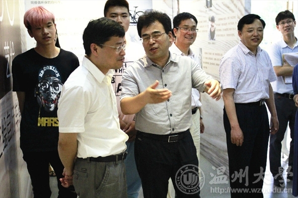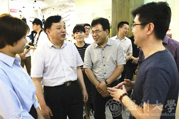 6月15日上午,全国创新创业50强评审专家陈年友、李斌、陈学军、陈森一行来永利官网学生创新创业实践场地参观和实地考察,校党委副书记牟德刚、副校长薛伟及相关部门负责人等一行领导陪同参观调研了温州时尚学院和“融艺优品”创客空间的创新创业项目。
