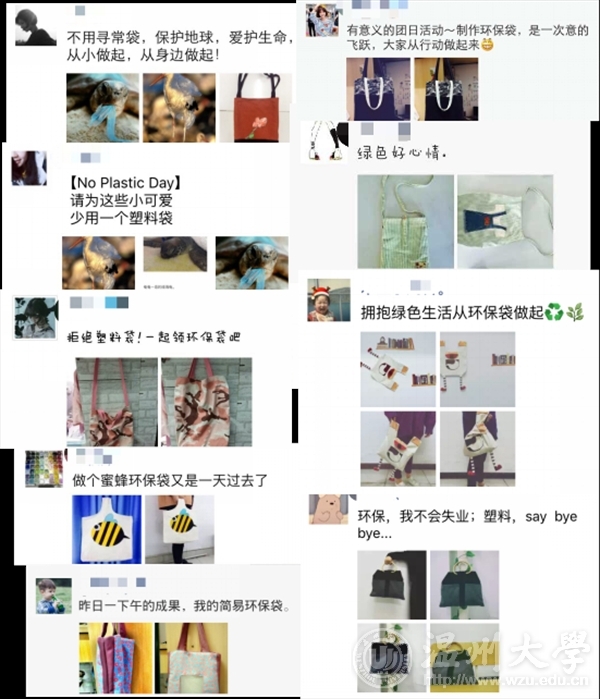 为提高同学们的环保意识,减少一次性塑料袋的使用,美院14服设2班团支部特举行“不使寻常袋[No plastic day]”的团日活动。2016年4月17日上午10点,全班13位同学准时到达美院2A304及2A207举办此次活动。本次活动主要分五个部分进行。首先,团支书向大家讲述塑料制品的危害以及颁布限塑令的意义及作用,激发同学们的环保意识。其次,同学们自行在各个网站收集已有的流行、有创意的环保袋,并且分成三个小组,进行了热烈的讨论与分析。之后,同学们纷纷拿出自己的设计稿进行讨论该如何制作并付之于行动。在缝制过程中,同学们也遇到了许多困难,像把内袋与外袋缝反了,像缝到一半底线没了,只能把之前的劳动成果都拆了,重新缝等等这样的情况。虽然这样的状况令同学们很烦躁,但是她们一想到活动的初衷,马上调整心态,重新开始制作。经过一个下午的努力,每个同学都顺利完成了自己的环保袋,并进行了成果亮点展示。最后,还在朋友圈进行了宣传呼吁,这次的团日活动圆满成功。通过这次团日活动—不使寻常袋,希望能影响身边的人能够使用自己的购物袋、环保袋,来代替会污染环境的塑料袋。在这小小的行动中,让环保意识能一点一滴的慢慢渗透进人们的意识中,渗透到生活中,形成环保的社会,保护自然环境。让“绿色家园”的理念切切实实的体现到我们的生活中来,让文明生活伴随我们成长。 文:14服设2班图:14服设2班