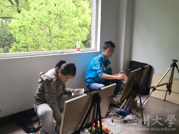 书记张丽萍、副院长谢子静一行实地考察了写生场地,了解学生宿舍居住环境,和饮食等各方面条件,并询问了学生的生活和学习情况。期间,由于是阴雨天气,同学们分别分布在楼道口、窗户旁、宿舍等地方进行作业的完成。张书记和谢副院长认真查阅了同学们的绘画作品,对作品质量给与充分肯定和高度评价,对师生在写生期间的良好表现进行了表扬。
