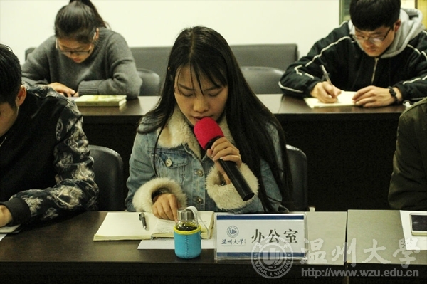 会议第三个议程是主席团代表张昇讲话,他从各位干事PPT展示的内容切入点评,从而对干事提出或多或少的意见和建议,并积极鼓励赞扬大家的工作热情与工作态度。也提出了对未来团学的美好期望。最后,吴彬彬老师就团学日常活动一些问题进行了强调与说明,在如此融洽的环境中结束了今天的会议。