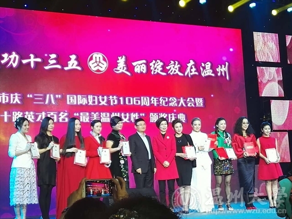 昨晚,在市妇儿活动中心举行的庆祝“三八”国际妇女节106周年纪念大会暨十路英才百名“最美温州女性”颁奖庆典上,永利官网服装与服饰专业教师叶茜获得“最美温州女性之时尚女性”称号。