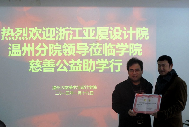 ylzzcom永利总站线路检测自2014年4月与亚厦温州设计院签定合作协议以来,双方在项目教学、实习就业、人才培养等方面开展了深入的合作。近日学院王剑峰同学在亚厦温州设计院实习,表现优秀!不料其父亲因意外出车祸并未找到肇事者,高额的医疗费让这个普通的家庭陷入困境。当亚厦院长慈善基金会秘书处得知这一消息后,提议首次启动“院长慈善公益基金会”。1月19日上午,“亚厦院长慈善公益基金会”胡逸理事长、梅笑天副理事长、胡世列常务理事等一行来到ylzzcom永利总站线路检测开展慈善公益助学活动,捐赠一万元爱心款帮助这个普通家庭慢慢走出困境!传递出设计院全体同仁的浓浓爱心和关怀!出席仪式的有学院李运河院长、郑彩莲书记、杨振海副书记、办公室李丽主任、设计系朱广宇主任、学生科叶如芳科长以及在亚厦温州设计院实习的11环艺班的同学代表。杨振海副书记主持仪式。首先,杨振海副书记对出席此次慈善公益助学的亚厦温州设计院领导一行表示感谢。随后设计系朱广宇主任就亚厦项目进课堂做了介绍,他提到这个教学改革能帮助大学生的课堂与实习就业对接,使学生毕业后能更好地走上就业岗位。而亚厦作为设计界的一位领头军,也非常重视后备力量的培养,学院很多学生走进亚厦,在胡逸院长等很多老师和设计届精英的带领下,进入各个分院或设计工作室进行学习深造,最后也有不少学生在实习结束后正式加入亚厦工作。在亚厦温州设计院实习的11环艺班的同学代表也作了实习感想发言,有同学说,亚厦是一个温暖的家庭,同事间融洽互助;有同学说亚厦的工作环境舒逸,但工作严谨,让人学到很多知识和技能;也有同学说亚厦是一个真诚的大家庭,希望能一直在这样的氛围里工作实习……接着,亚厦温州设计院胡逸院长代表设计院也作了发言,他说,亚厦温州设计院与ylzzcom永利总站线路检测有着深厚的渊源,这一次的慈善公益助学行不仅仅是慈善活动,更像是一次年终的成果汇报。亚厦一直重视企业文化的建设和互补性资源的开发利用,秉着“做有文化的生意,做力所能及的事”,传递企业文化中的正能量,推动公益事业的发展,做室内设计业的标杆。最后,郑彩莲书记在听取相关发言后做了总结,她说:“我们深刻感受到亚厦企业文化和美院课堂文化的融合,几个项目的开展推进,展现了双方战略意识的生动合作,也填补了学生在实习就业方面的经验,特别是增加了学生在现场项目的参与度和实践工作的经验值,也希望亚厦温州设计院和ylzzcom永利总站线路检测继往开来,开设更多的第二课堂。” 李运河院长也作了感谢发言,他提议双方在2015年开展校企领域的跨界合作,并敦聘设计院梅笑天执行院长为学院客座教授。 一方有难,八方支援!同样值得赞扬的是在亚厦温州设计院同批实习的其他同学得知了王剑峰同学的情况后,也积极发动班内同学伸出援助之手,筹集了几千元善款,给予同学关心与精神上的鼓励。