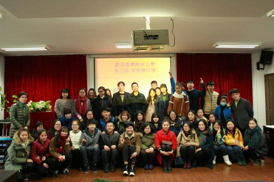 为迎接台湾佛光大学交换生黄亚晴和叶圣杰两位同学来到ylzzcom永利总站线路检测进行交流和学习,3月4日下午,永利官网13级产品设计班与13视觉传达班在学院2B4001会议室联合举办了欢迎仪式。出席本次欢迎仪式的领导有学院党总支书记郑彩莲,副教授胡文超和副教授王薇。 首先,由两个班级的同学合作带来的弹奏演唱,清新的风格和用心的演绎博得了现场各位老师和同学们的阵阵掌声,也让来自台湾的新同学感受到了我们美院人的热情和友好。接着,两班班长为新同学致欢迎词,他们都热情大方地表达了对新同学的美好印象,并表示会在以后的学习生活中给予最大的帮助,并送上了班级同学精心准备的礼物。两位新同学分别作了自我介绍,王薇老师和胡文超老师分别介绍了本班专业的情况,并结合自身的经历表达了对台湾同学的赞许和期望,希望他们能够在美院的学习中收获更多的知识和经历。然后,郑彩莲书记代表永利官网向两位新同学的到来表示欢迎,说到两位台湾同学的到来会让永利官网与佛光大学交流的深度与高度更进一步,也希望两位同学在ylzzcom永利总站线路检测体验到不一样的文化和生活。最后的自由交流环节,同学们都积极参与,向新同学提出了很多有趣的问题,如“这么远过来会不会想家”“平时说话是不是像电视剧中那样’等等,两位新同学也热情地一一解答。 欢迎仪式的结尾,大家纷纷要求和新同学合影,于是,在热烈的气氛中欢迎仪式也圆满地落下了帷幕。