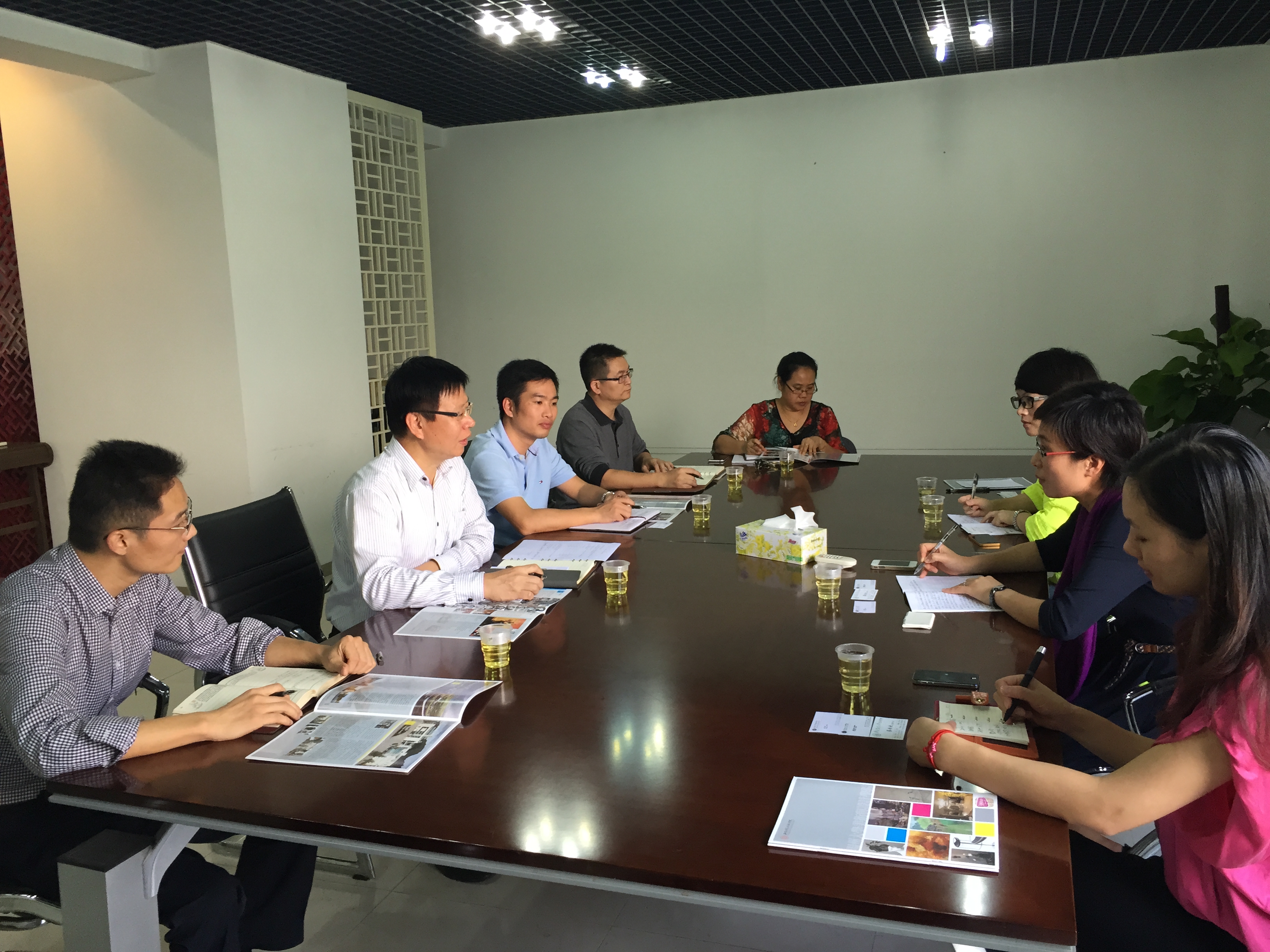 在华南农业大学艺术学院交流学习。该院党委书记蔡传钦、副书记陈志远、副院长张健及办公室主任等接待了交流学习组,并进行了亲切会谈。蔡传钦就学院发展和建设概况向交流学习组一行做了介绍。该院1996年办学至今,现有六个专业九个系,教职工136人,本科生3300余人。该院在人才培养和专业教学上体现四个特色,一是面向社会面向市场;二是理论与技艺并重;三是科学育人;四是瞄准前沿发展。陈志远就学生工作特点与特色与会做了沟通。双方就硕士点申报问题、教师关心的热点问题、学生就业及综合能力提升问题、教师党建问题等进行了深入沟通。会谈结束后,交流学习组兴致勃勃地参观了该院的“广东民族服装服饰艺术博物馆”、学院美术展厅、表演厅、专项创新工作室、一楼咖啡厅等教科研及休闲场地,并在张健院长的指引下参观了华南农业大学校园。该院办学规模大、硬件设施完善、办学特色鲜明、艺术氛围浓厚、管理组织严谨,学习交流组一行受益匪浅。