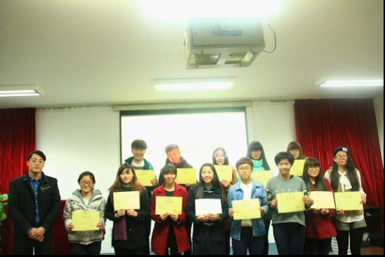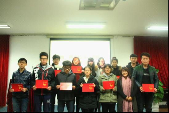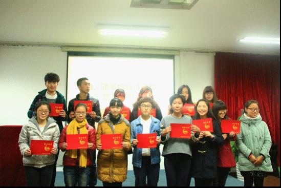 12月21日下午,永利官网团委学生会在2B4001召开了2014-2015学年第一学期团干结业仪式。出席活动的有学生会团副金李斌、主席吴荣婷、副主席叶佳颖、部分部长和所有参加本学期团干培训的学生干部们。首先,全体与会人员起立奏唱团歌。接着是由本次参加团干培训的学生干部以小组形式进行以“如何成为一个优秀的学生干部”为主题的PPT展示。一共有七个小组,每个小组都从各自不同的角度和深度阐述了自己对于学生工作和学生干部工作与责任的理解,如提到要树立高尚的思想道德节操和服务意识,培养提高组织活动能力;要具备扎实的专业知识,才能支持我们更好地为当好团学干部等等。第也还有一些独特的视角和想法,如应该具备苦难意识,“鹰一样的个人,雁一样的团队”等等也让大家在不同的方面有了自己新的感悟和见解,也给在座的团学干部留下了深刻的印象。仪式最后一项,由组织部委员宣读本学期团干培训结业人员名单和获得优秀学员的同学的名单,并由到场的主席团成员为获得结业和优秀学员的团学颁发结业证书和荣誉证书,最后还与获得荣誉的团学合影留念,在激昂的颁奖音乐中,本学期的团干培训画上了圆满的句号。(通讯:张宏扬,摄影:刘炳言)