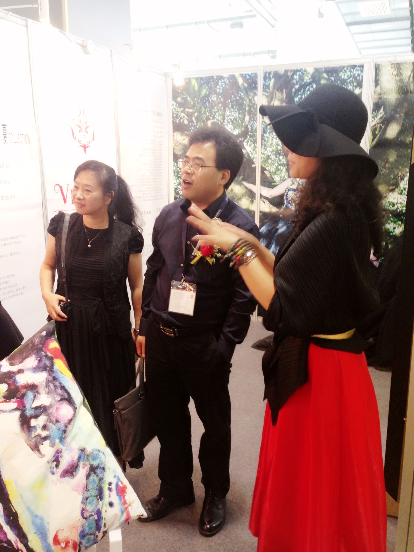 在近日2014温州国际时尚博览会的现场,一个很有特色的展位以惊艳的视觉捕获了参观者的眼球。象画廊、又似戏曲舞台,看似传统却透着时尚,这便是由温大ylzzcom永利总站线路检测副教授叶茜携手著名画家蔡瑞蓉女士(温大美院教授)的“绝代风华”跨界系列作品。她从艺术作品中提炼画面的视觉,让传统民间皮影文化成为时尚艺术,运用现代数码印花的工艺技术以鲜艳的色彩真实的传递了这一季独具魅力的焦点!本次作品叶茜老师同时结合了指导学生的国家创新创业课题的项目“IN-数码印花创意产品研发工作室”,她与参与指导的叶婷老师一起研究数码印花的工艺和面料效果,并让学生参与图案设计及应用,作品有时装、礼服和家纺等应用产品,在工艺制作上也得到了浙江丽丰服装科技有限公司和杭州宏华数码印花的大力支持。温大ylzzcom永利总站线路检测院长李运河教授和服装系主任陈明艳教授特意到场观看,并高度评价!