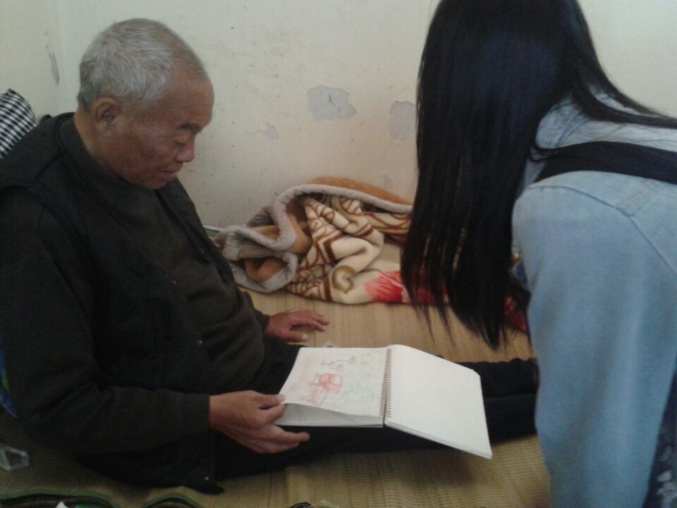 4月27日,美院“艺家人”青年志愿者协会在杨府山敬老院举办了“故事绘——听您讲过去的故事,为您画流逝的时间”的活动。 早上8点,参加此次活动的负责人、志愿者和校瓯语社成员在E区门口准时集合,经过一个半小时左右的路程, 志愿者们终于来到了杨府山敬老院。在敬老院负责人的指引下,一行17人来到了三楼汤德新老先生的房间。汤爷爷因为车祸卧床二十年,他对志愿者们的到来感到十分惊喜。他向大家聊起了自己年轻时候的经历,虽然很多的情节片段已然模糊,但从老人的言谈笑语中,大家还是能感受到那份发自内心的自豪和满足。 志愿者们将汤爷爷的故事进行整理并绘制成了18幅图,当大家把装订成册的“故事绘本”送给汤爷爷时,他颤抖着双手仔细翻看,不禁潸然泪下,这一幕感动了敬老院所有的工作人员。 学院学生从美术专业实际出发,本着关爱老人和感恩社会的活动理念,用手中的画笔跟随老人一同回忆其走过的年华岁月,相信这本注入爱心的精美“故事绘”定能为老人的记忆添上一笔绚丽的色彩。