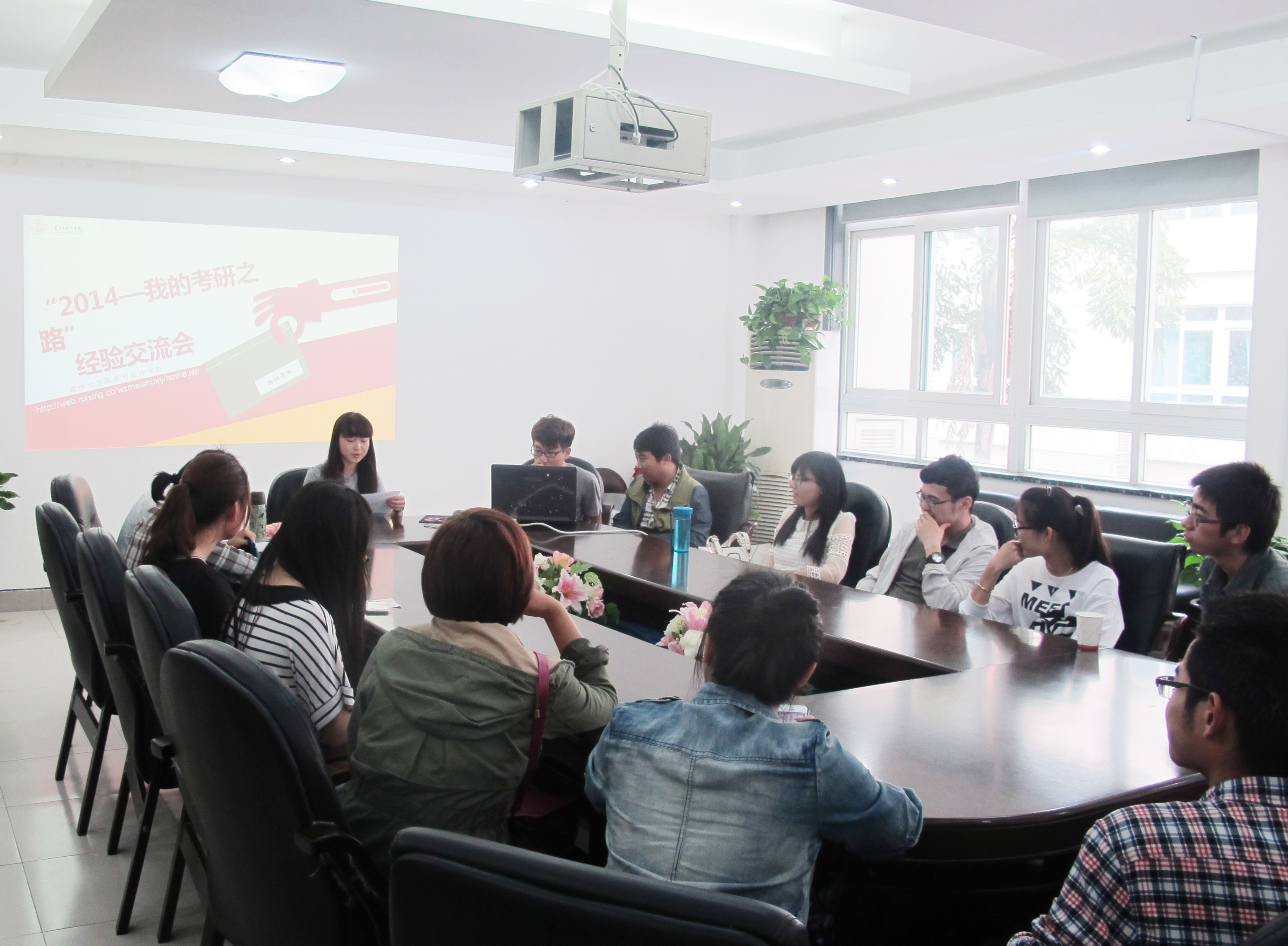 5月14日下午,由永利官网团委学生会学术科技部主办的“2014梦想的延续——我的考研之路经验交流会””在2B-216顺利举行。学生科副科长叶如芳、辅导员杜茜老师和10级考研录取的同学出席了此次活动。