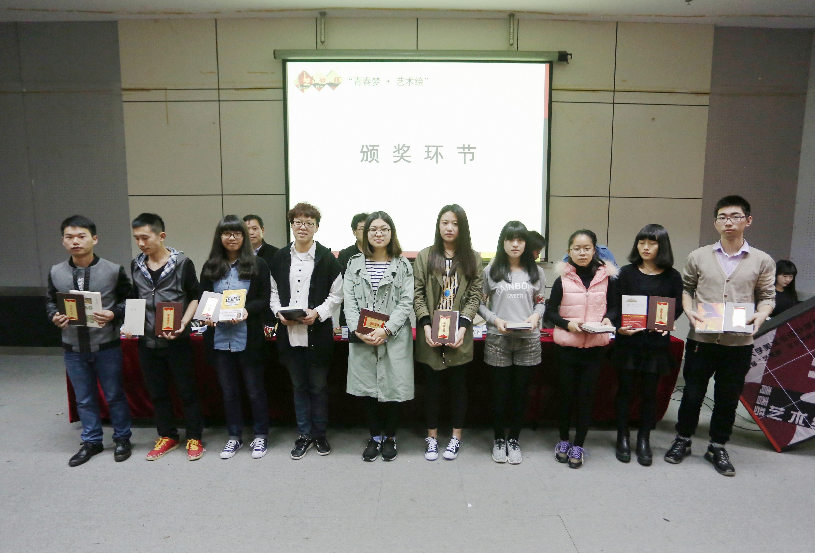 首先,党总支郑彩莲书记宣读了2013-2014学年永利官网校优良学风班创建拟立项班级名单、2012-2013学年永利官网“五班十星”获得班级和个人名单、2012-2013学年永利官网获校“优良学风班”和校“学习标兵”名单。在欢快的音乐中,领导们为获奖班级和学生一一颁发荣誉证书及奖品,并合影留念。