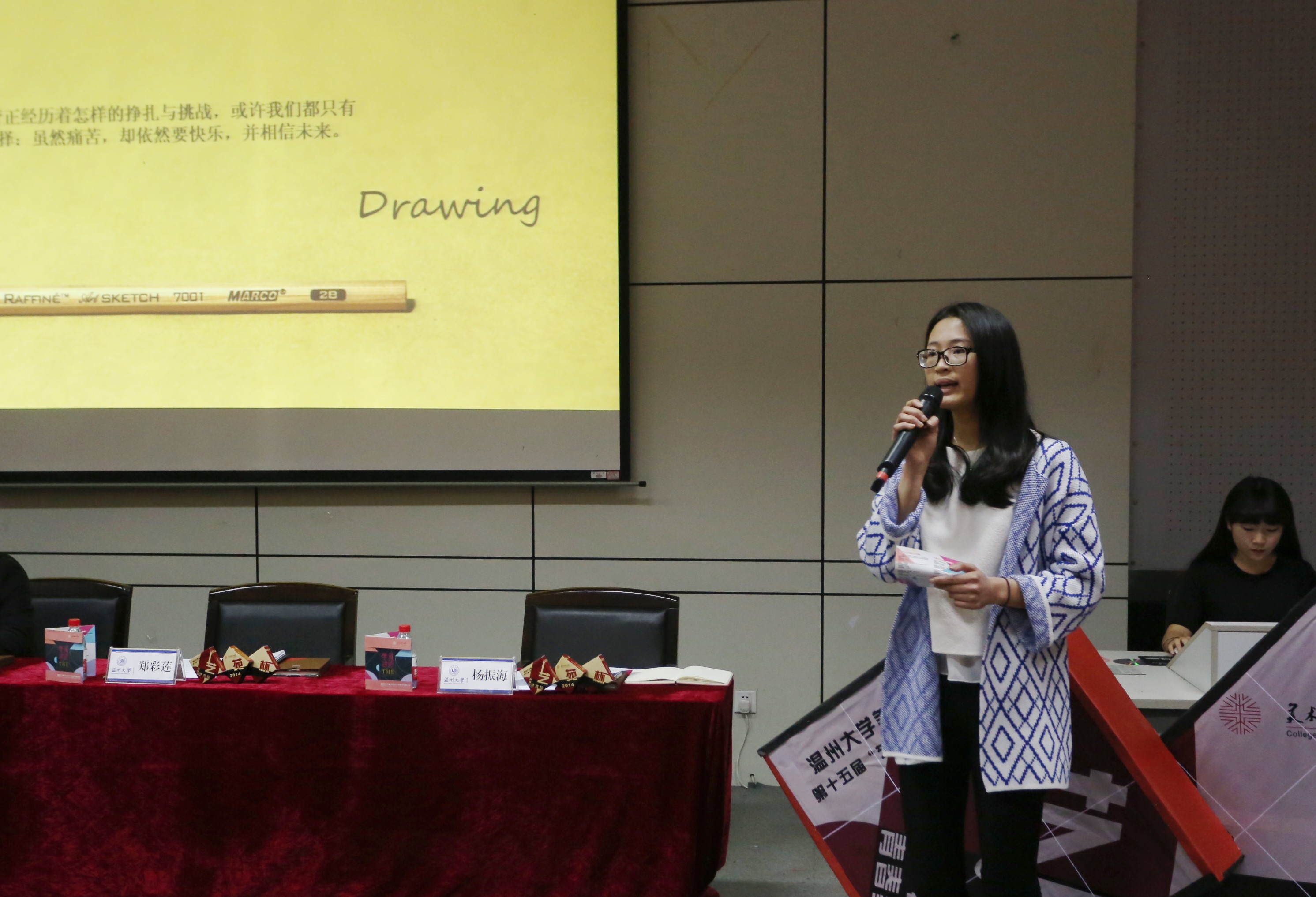 接着,校“优良学风班”班级代表刘响为大家带来了精彩的班级展示。一张张照片是一个班级近四年的青春欢笑,四年的团结奋斗,四年的累累硕果。他有感于班级建设的艰苦路程,一是要班委带头,推进班级建设;二是要组织活动,增进同学感情;三是要积极参赛,促进专业进步。他的发言为13级新生班级们带去了宝贵的班级建设经验,赢得了台下阵阵掌声。随后,校“学习标兵”林依潞与学弟学妹们分享了她大学四年奋斗的学习历程与收获的喜悦。一张张荣誉证书后面隐藏着多少辛勤汗水,这鼓舞了同学们的信心与决心。她讲到:“学习从不会嫌太早或者太迟,一切都刚刚好。”她希望学弟学妹们珍惜短暂的四年,做好学业与人生规划,朝着目标努力拼搏。