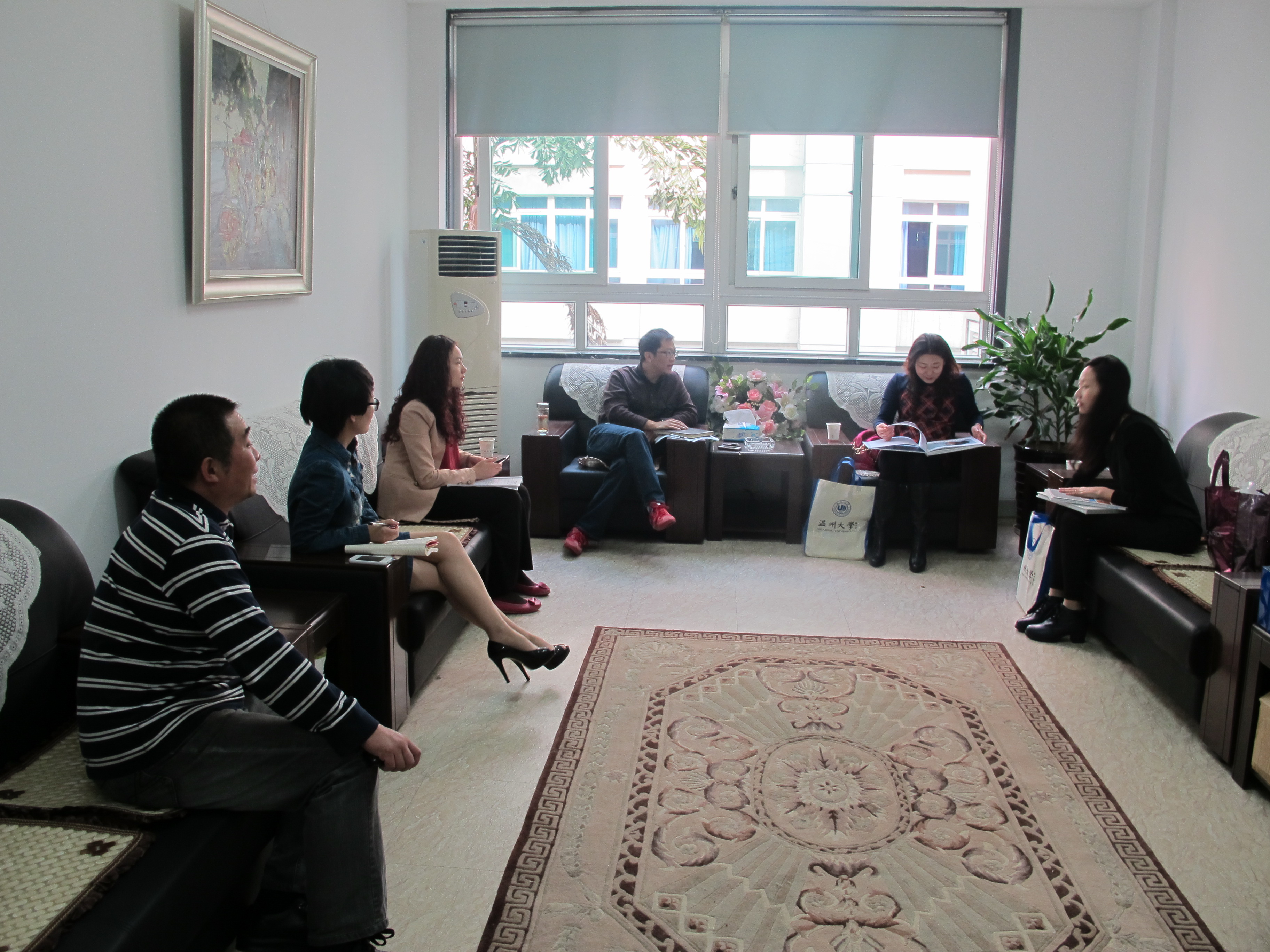 10月30日上午,唐山师范学院美术系书记李丽娜、招生就业办公室副主任李旭一行来永利官网考察交流。学院党总支书记郑彩莲、副书记杨振海、办公室主任李丽、美术系主任陈伟、学生科副科长叶如芳等会见了客人,双方就学生工作、美术系专业建设等内容进行了工作交流和探讨。 杨振海代表学院对唐山师范学院考察团一行的来访表示欢迎。他简要介绍了永利官网的发展历程,学科专业特点,以及近年来学院取得的成绩。他希望通过两校的交流与合作,取长补短,互相学习,共同促进双方学院在教学、科研、人才培养上的蓬勃发展。李丽娜对永利官网的热情接待表示诚挚的感谢,对永利官网取得的发展尤其是学生学科竞赛、就业创业等工作的鲜明特色,给予了高度赞赏,并表示希望通过这次考察交流,深入沟通,进一步提高该系的办学水平和学生就业水平。 交流会后,考察团一行还兴致勃勃地参观了我校富有地方特色的大学生创业园。