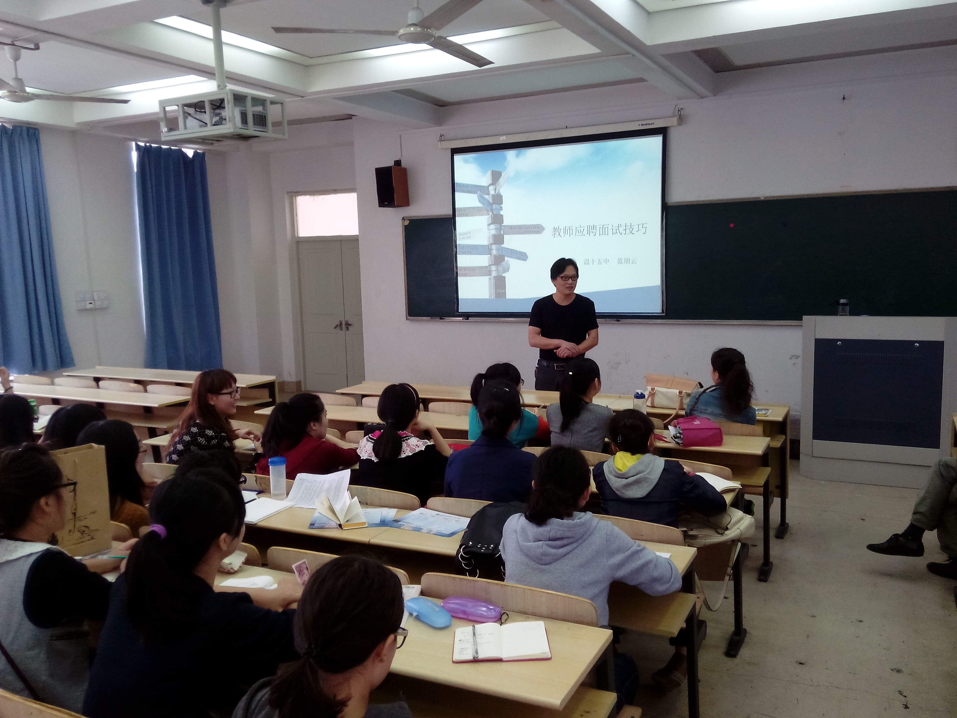 优秀的面试是成功的敲门砖,为培养在校美术师范生的应聘技巧,11月6日下午一点半,温州市十五中美术教师蓝鹏云老师和龙湾二小美术教师包新新老师在3A-201为同学们做了《美术教师应聘技巧座谈》专题讲座,主持此次讲座的是永利官网研究生办公室主任胡建南老师。