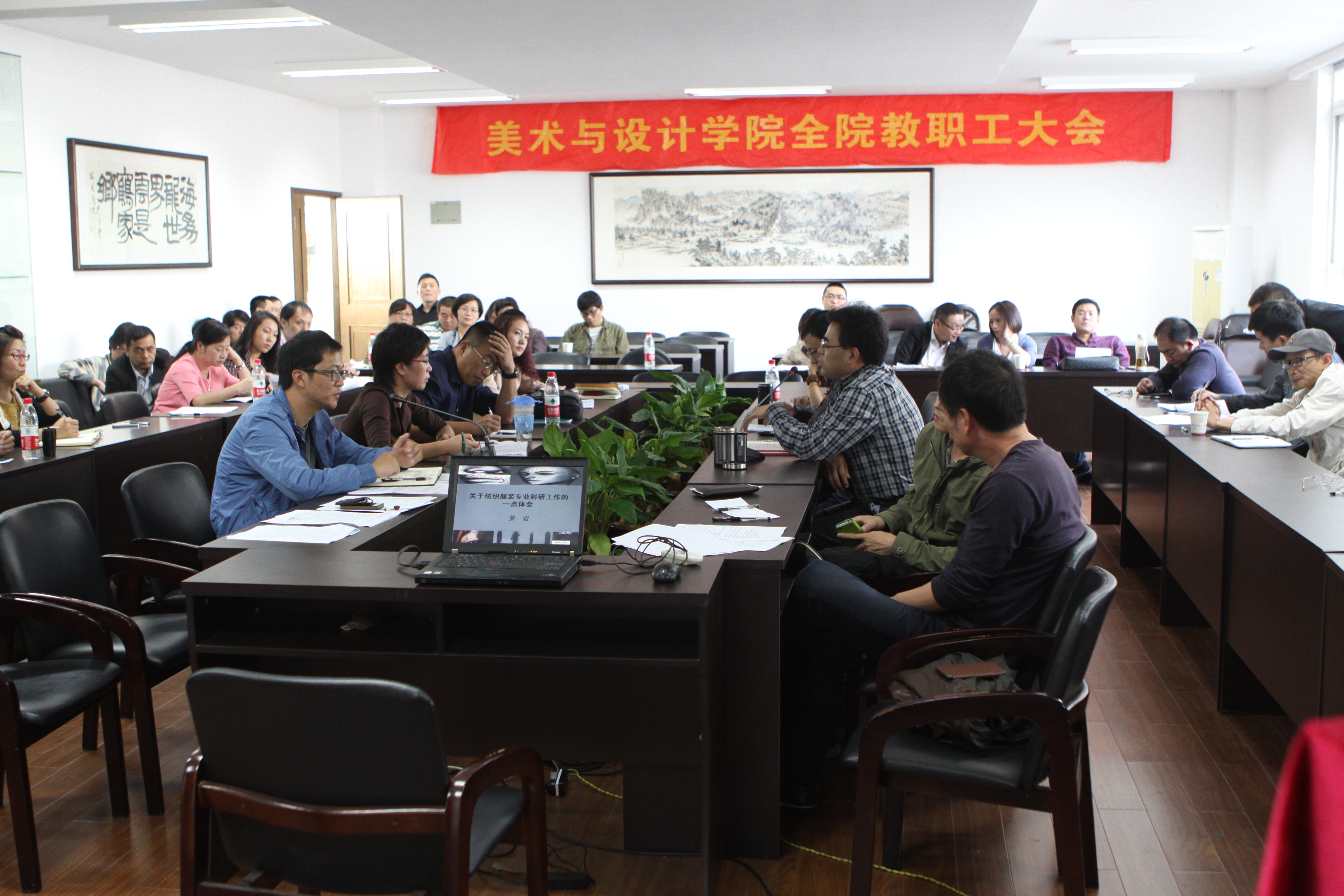 2013年11月6日,永利官网在2B4001多功能厅召开本学期第二次全院教职工大会,学院领导李运河、蔡可群,杨振海及全院教职工出席了会议。会议由院党总支书记郑彩莲主持。 蔡可群副院长对本学期开学以来的教学情况做了总结,并就学生毕业作品展、学生毕业设计、实习写生和实践采风等具体工作做了安排,要求学院教师切实做好学期中期教学检查工作。 杨振海副书记对本学期的学生艺术展演活动、2013年大学生创新创业项目申报、大学生创业计划大赛及寝室导师工作等方面做了通报和说明。 李运河院长对学院近期整体工作做了总结,并对科研经费管理、科研工作及教学工作做了强调。科研方面,鼓励大家时刻紧跟研究动态、凝练研究方向,厚积薄发,不断提高学科科研水平。教学方工作方面,教师要有强烈的责任感,教学工作要更加制度化、规范化,鼓励教师多参加教师技能奖项的申报,切实提高师资队伍的水平。 党总支书记郑彩莲书记总结强调,学院将不断重视师德师风建设,更进一步做好凝聚力工程,完善制度化建设。希望广大教职工能增强责任意识,继续做好课堂教学管理工作及教研室工作;定期召开民主生活会,做好党内民主工作;做好 “赛季风”等学院品牌活动,全院上下凝心聚力、共生共荣,使学院更加团结和充满生机,为学院争创更好更辉煌的成绩而努力。 校纪委曾园同志就ylzzcom永利总站线路检测校务院务公开工作向全院教师做了问卷调研。 会后,姜岩和张晓剑两位老师就科研经验与全体教师作了经验分享。