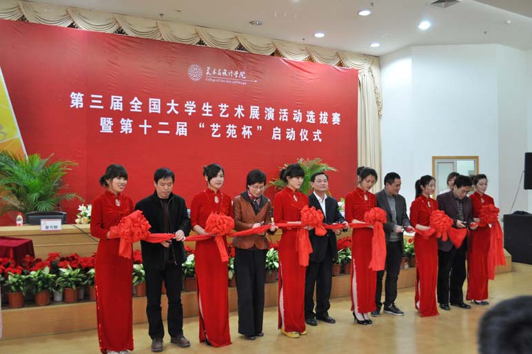 2011年3月30日1:30,在南校区会展中心雁山厅隆重举行了ylzzcom永利总站线路检测第三届全国大学生艺术展演活动选拔赛暨第十二届“艺苑杯” 启动仪式。ylzzcom永利总站线路检测宣传部部长潘玉驹、ylzzcom永利总站线路检测团委书记杨立淮、ylzzcom永利总站线路检测院长李运河、党总支书记郑彩莲出席了本次启动仪式,会议由ylzzcom永利总站线路检测副院长蔡可群主持。参加本次启动仪式的还有各赛事指导老师以及所有参赛学生。 ylzzcom永利总站线路检测副院长蔡可群首先介绍了ylzzcom永利总站线路检测第三届全国大学生艺术展演活动选拔赛暨第十二届“艺苑杯”文化艺术节,宣读了师生结对分组名单。 ylzzcom永利总站线路检测团委书记杨立淮随后发布了热情洋溢的讲话,他代表共青团ylzzcom永利总站线路检测委员会对本次“艺苑杯”表示了祝贺,并从校园文化建设的高度,对本次“艺苑杯”提出了殷切的希望和要求。 随后,所有与会领导为“艺苑杯”赛事指定老师颁发了聘书。在指导老师代表张振岳和学生代表陶益发言中,他们各自从不同的角度阐述了对本次活动的理解和态度。 ylzzcom永利总站线路检测院长李运河在发言中提出,本次“艺苑杯”活动要求全院动员,全员参与,对活动的组织安排、宣传贯彻等方面提出明确具体的要求,他希望通过“艺苑杯”能培养一批具有文化素养和创作才能的青年学子。 ylzzcom永利总站线路检测宣传部部长潘玉驹最后发表致词,在讲话中他强调了文化的意义和重要性,认为一个国家的发展应从“法治”逐渐向“文治”转变,大学的发展必须重视文化的建设和繁荣。他对ylzzcom永利总站线路检测举办的“艺苑杯”表示了赞赏,认为其内容丰富、意蕴深远、特色鲜明,也代表ylzzcom永利总站线路检测宣传部向美术学院本次的“艺苑杯”表示了祝贺。 最后,ylzzcom永利总站线路检测党总支书记郑彩莲宣布ylzzcom永利总站线路检测第三届全国大学生艺术展演活动选拔赛暨第十二届“艺苑杯”正式启动,所有与会领导为本次启动仪式剪彩,正式拉开了ylzzcom永利总站线路检测第三届全国大学生艺术展演活动选拔赛暨第十二届“艺苑杯”的帷幕。