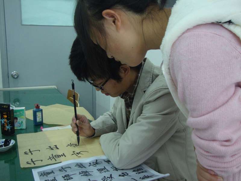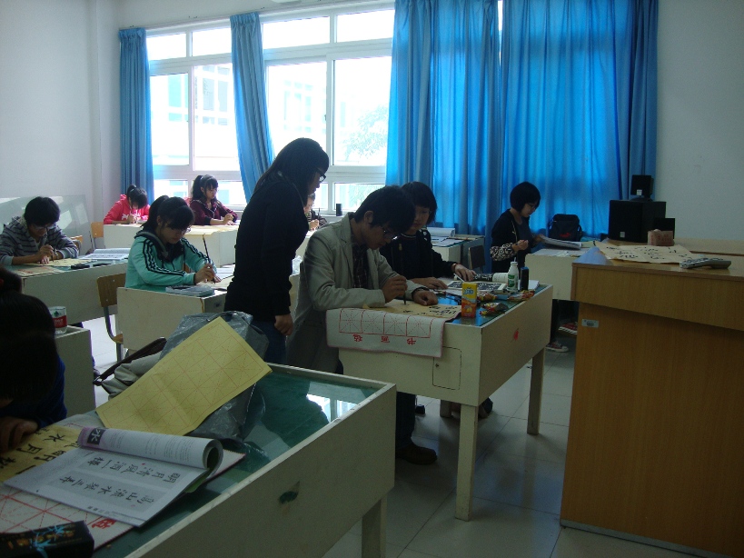 2010年11月21日上午9点在ylzzcom永利总站线路检测2B2001教室和2B4001教室内,ylzzcom永利总站线路检测书法培训素拓班正在开始本学期的最后一堂课。 该培训班是ylzzcom永利总站线路检测团委素拓中心开设在永利官网的一个书法培训班,由永利官网08美术国画班的陈龙龙同学担任该班指导老师。该班于本学期第六周开课,累计上课次数6次,上课时间固定在每周周日上午9点至11点半在ylzzcom永利总站线路检测2B2001和2B4001,该班成员来自学校各个学院,其中正式学员40余人,旁听生10多人。 根据学生上交的心得来看,陈老师很尽职尽责,而且循循善诱,在学生中口碑很好。陈老师不光光有着老师的身份,还是一位学长,更贴近学生生活,具有亲和力,有利于彼此间的沟通交流,对学生们书法水平的提高有很大帮助。在谈话中了解到该班在上课期间曾有过一次表演活动,老师当堂表演4分钟的书法,技艺精湛,赢得了学生们的一致好评。课堂上,同学们都认真在练习毛笔字,学习氛围浓厚,老师则在一旁指导,给出了很多宝贵的建议。 据悉,在此次课堂结束之后还将开展一次书法表演,这会是一次很好的书法交流的平台。大家尽请期待!