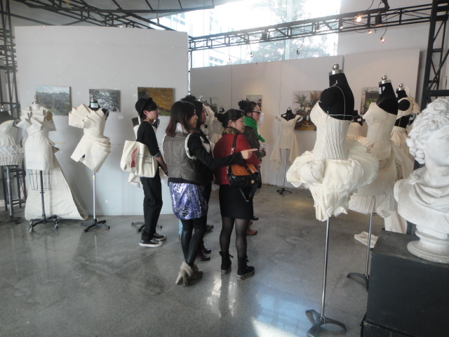 2010年11月27日星期六下午2:30,在美院2B一楼大厅里,ylzzcom永利总站线路检测主办了“嫁依工坊杯”2010ylzzcom永利总站线路检测第三届服饰艺术造型设计竞赛(美院“赛季风”之一)初赛。 此次初赛由美院服装系承办,新感觉(温州日报报业集团)协办,温州“嫁依工坊”婚纱坊赞助。评委团则由“嫁依工坊”的2位设计师及永利官网立裁老师魏静、陈明艳、叶茜和陈莹老师组成。该活动得到了ylzzcom永利总站线路检测服装系的大力支持;为此,美院还特别成立了“服装立体裁剪”教学团队,从而能更好、更全面的指导学生。 50余件参赛作品都是由参赛选手从最初停留在纸面的设计手稿,经过反复修改雕琢,最终使用白坯布,使其成形于人台之上,展示其或华丽或典雅或奔放的霓裳魅力。评选中,评委们手握35张贴纸花朵,细致而深入地欣赏着参赛作品,经过简略的讨论和慎重的考虑后,将神圣的每一票贴到所青睐的作品上。那犀利的眼光和独特的见解背后,是评委们对各位选手的肯定和激励。最终,39位选手在此次比赛中脱颖而出,成功晋级决赛。在此也祝贺这些晋级的选手能在决赛中大放光彩,绽放对美的创造力与对艺术孜孜追求的精神。 此次比赛中,不仅积极响应ylzzcom永利总站线路检测“以赛促学”的宗旨,更使永利官网浓厚的学风再上层楼,使服装学子们在比赛中不断汲取知识,飞速成长。当然,此次比赛也让其他莘莘学子大饱眼福,充分感受有人群的地方就有美,有生活的地方就有艺术。