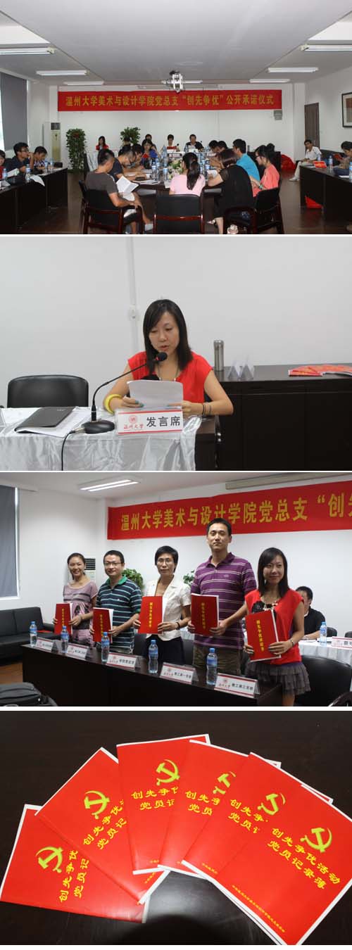 “我代表教工第一党支部在创先争优活动中作如下承诺:爱岗敬业,具有高度的责任观念。上课前认真备课,努力上好每一堂课,课后认真批改作业,尽心尽责地完成本职工作……”; “作为绘画基础支部,我们在科研、创作上保持于时具进的精神,提高自主创新的能力,积极申报课题,并努力创作出符合时代需求的艺术作品……” 9月21日,ylzzcom永利总站线路检测党总支在2B4001会议室举行教工党员公开承诺仪式。学院党总支委员及全体教工党员参加了仪式。仪式由学院党总支副书记朱启鑫主持。朱启鑫在仪式上传达了总支创先争优活动推进会的会议精神,并宣读了《ylzzcom永利总站线路检测党总支创先争优活动方案》。副院长李运河代表学院党总支宣读了总支承诺,随后,各教工支部书记代表各支部作公开承诺并在承诺书上签字。 仪式上,各支部的承诺充分体现了“争当岗位奉献标兵”、“创温大艺术先锋团队”、“亮牌示范争做育人成长表率”和“争当思政工作标兵”等内容。活动过程中,各教工支部从支部的工作实际出发,各具特点,确保了公开承诺不摆花架子、不走过场。在公开承诺前,各教工支部应学院发展和学生成长之所需、所急、所盼,将讨论意见进行汇总,力求承诺事项落到实处。 学院党总支书记郑彩莲郑作总结。她首先明确了创先争优活动的内涵和重要意义,希望通过公开承诺,接受群众监督,以提高教工党员的责任感和使命感。她要求各教工支部以总支的七大主题活动为纲,理清各支部创先争优活动的工作思路,把基础工作和创新工作相结合,深入扎实的开展创先争优活动,为学院的又快又好发展注入活力。 据悉,在创先争优活动中,美术学院党总支将推行承诺六法,即明确承诺、严查承诺、公示承诺、履行承诺、监督承诺和评议承诺,要求全体教工党员晒承诺,接受群众监督。