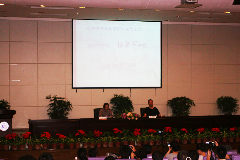 6月12日晚上,中国美术学院油画系主任,硕士生导师杨参军教授应ylzzcom永利总站线路检测邀请到ylzzcom永利总站线路检测育英图书馆报告厅做了题为《与物同游》的学术讲座,ylzzcom永利总站线路检测院长曾维华教授主持讲座。 杨参军教授首先给大家欣赏、介绍了中国美院4个油画工作室部分学生的毕业创作画;美院老师们的纸上作品;中国历史画创作作品。接着,与大家分享他在“具象表现主义绘画”的实践体验。他说:写生不是被动地表现对象,是主体与对象的默契,是用自己的肉眼对世界的观察,表达自己的真感受。他称自己是一个冲动的、比较写意的、有一定情绪化,又有点缺少理性连贯性,常常会迷失方向的实践者,冲动起来会无休止的、忘我的画画,到了“物我两忘”的境界。最后,杨参军教授用生动、感性、幽默的语言讲解自己的作画历程,风格转变、情感体验,会场上时常爆发出热烈的掌声和会心的笑声。 在现场互动环节中,学生纷纷向杨教授提问,杨教授对每个问题进行了精辟的解答。 讲座以大量的图片资料给听众以直观的视觉冲击,所传达的信息既有系统性,又具前瞻性。讲座学术性强又不失趣味,与会师生开拓了学术视野也增长了绘画感受。