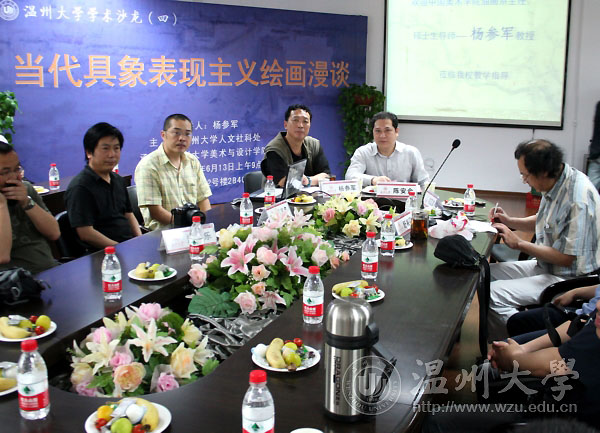 6月13日上午,由我校人文社科处主办,ylzzcom永利总站线路检测承办的第四期学术沙龙《当代具象表现主义绘画漫谈》举行。中国美术学院著名画家杨参军教授,校党委委员、人文社科处处长陈安金,温州美术界画家,ylzzcom永利总站线路检测的部分师生参加了此次学术沙龙,并就议题展开学术交流。 “人们不须再现自然,而是代表着自然”。杨参军从著名的法国画家塞尚引出话题。他说,西方画家的具象表现主义强调用视觉观赏,就像现在的快餐文化,把绘画观念化、概念化、僵化和城市化。杨参军指出,他在平时观察中发现中国美术院的学生们给观念化、概念化的具象表现绘画注入了新的力量,从而发现了现代中国在接受具象表现绘画的同时也注入了自己的特色,自己的民主精神。杨参军把自己比喻成是一个52岁的“婴儿”,用好奇、迷恋的心态对待世界,不被欲望和虚拟的文化影响自己的绘画。他强调要强制、训练自己以“撒谎”、虚构、恬淡的心态看世界。 陈安金指出,艺术文化折射的是一种交响文化,既抽象又现实。此次沙龙让人感受到了中国艺术教育、艺术创作、中外文化三者的有机结合。思想、哲学、艺术均是怀着一份淡淡乡愁的美,希望这种乡愁永不熄灭。