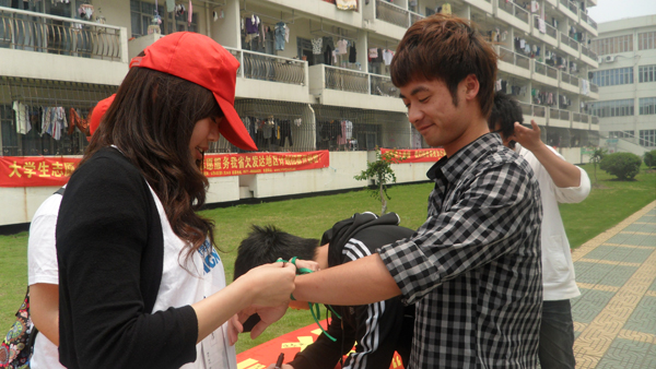 5月12日,两年前的这一天,黑色蔓延。有多少人在一夕之间失去了所有,家、亲人、生命!地震虽已过,但伤痕还在,让我们为那些逝去的人,为那些幸存的人在心中默哀,祝愿他们无论在哪都要健康快乐! 今天11时,ylzzcom永利总站线路检测“艺家人”青年志愿者协会带领志愿者在温大生活区A区开展了5·12纪念活动。 空中久久环绕着默哀鸣笛声,笛声如幽怨的哭声激起了每个人心中的伤痛。来往的同学和教职工远远看到志愿者们进行的活动,纷纷在活动横幅上签上庄重的一笔,并将自己的祝福写在便利贴上,然后贴在心愿墙上。志愿者们为参与的同学和教职工的手上系上了绿丝带。据说绿丝带寓意“面向未来,充满希望”。我们希望灾后幸存的人在逆境中勇于拼搏,不放弃希望,不放弃未来。温州著名电视新闻栏目《百晓讲新闻》特地前来采访了此次活动,志愿者们希望借此机会将自己的心意通过电视台传达给全市市民,期待所有有心人能够尽绵薄之力帮助那些幸存的人。 此次5·12纪念活动彰显了我校大学生强烈的社会责任感和优良的传统美德,得到了在校师生的良好反响。